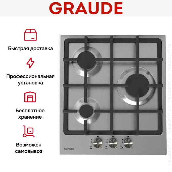 Варочная панель Graude GS 45.1 E в цвете нержавеющая сталь прекрасно дополнит любую кухню. На чугунных решетках устойчиво стоит даже крупногабаритная посуда, также они долго сохраняют свой внешний вид и дополняют дизайн модели.