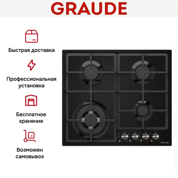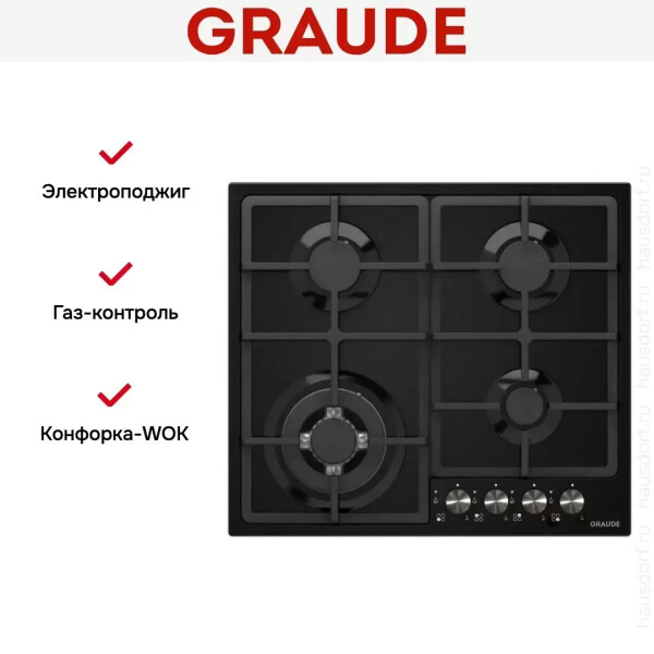 Газовая варочная панель Graude GS 60.2 SM выполнена из эмали черного цвета. Чугунные решетки подчеркивают стильный дизайн модели и обеспечивают устойчивое положение посуды на рабочей поверхности. Варочная панель оборудована четырьмя конфорками двумя средней мощности, одной малой мощности экономичного режима и WOK-конфоркой для посуды с широким или выпуклым днищем. С помощью автоматического электроподжига можно разжечь горелку одним поворотом переключателя, без спичек и зажигалки, что повышает комфорт использования. Форсунки для баллонного газа в комплекте.