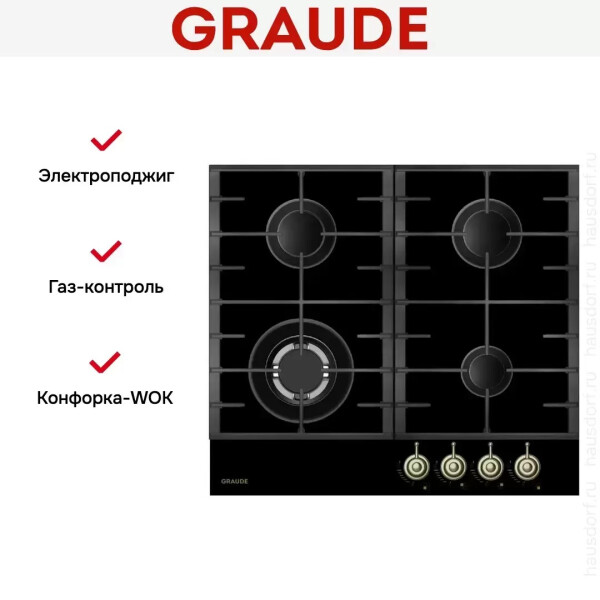 Дизайн: Газовая варочная панель Graude GSK 60.1 S в черном цвете, будет стильным и оригинальным решением для вашей кухни. Без рамочное исполнение и горелки SABAF создают единый стиль, обеспечивая общий отличный вид.
