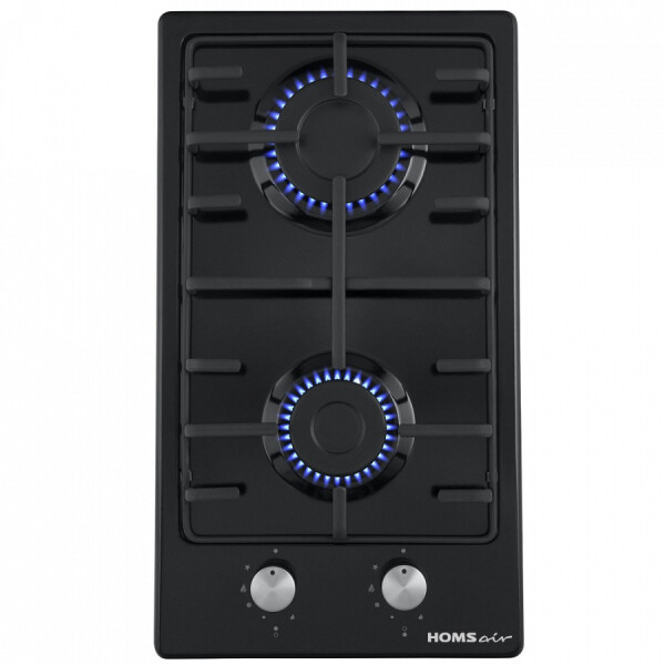 Встраиваемая газовая варочная панель HOMSair HGE323GCBK с итальянскими горелками Sabaf выполнена в классическом дизайне и имеет строгий черный цвет.
