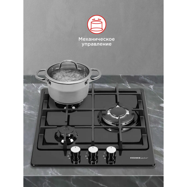 Газовая варочная панель HOMSair HGE433TGCBK имеет 3 конфорки разной мощности, которые позволяют быстро приготовить различные блюда. Максимальную безопасность при работе обеспечивают устойчивые чугунные решетки и система газ-контроль, которая предотвращает подачу газа в случае задувания пламени.