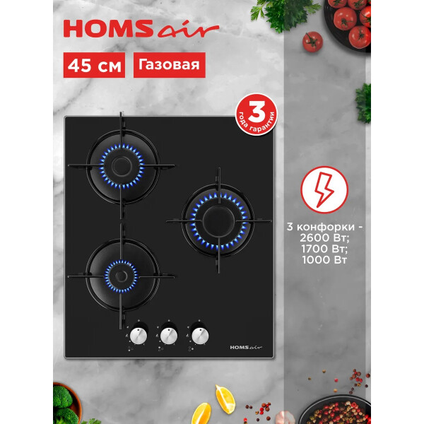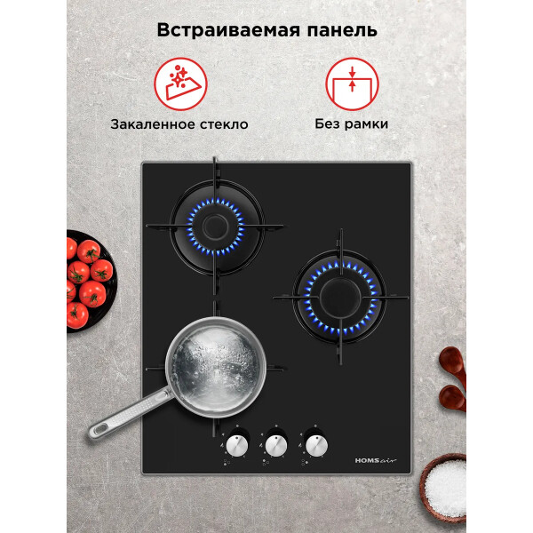 Встраиваемая варочная поверхность, шириной 45 см, Газ на стекле.