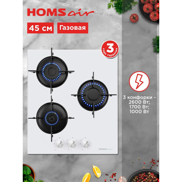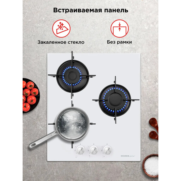 Встраиваемая варочная поверхность, шириной 45 см, Газ на стекле.