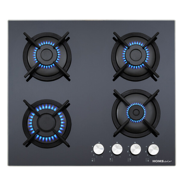 Для обеспечения безопасности прибор HOMSair HGG641BK дополнен системой газ-контроля. Переключение мощностей осуществляется при помощи простых поворотных переключателей со встроенной в каждый функцией электроподжига. Оборудование имеет размеры 59x51.5 см.