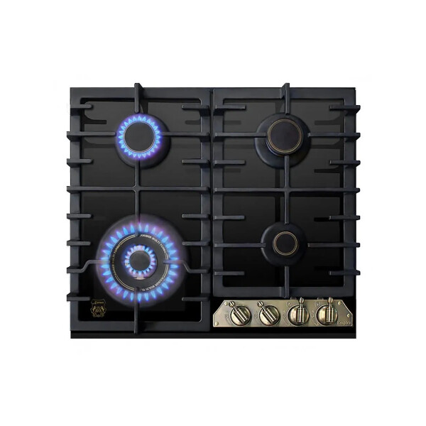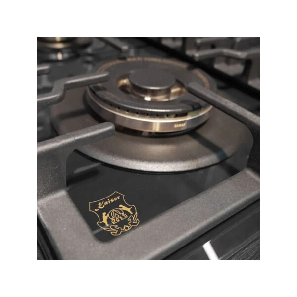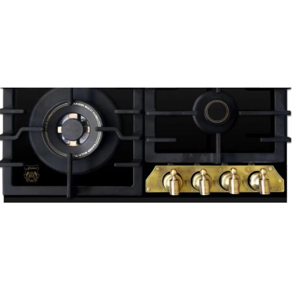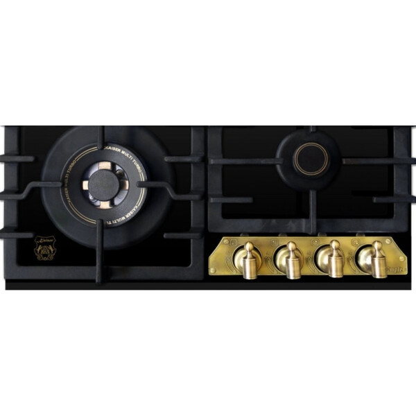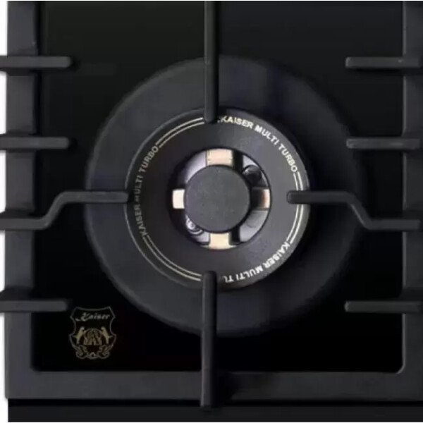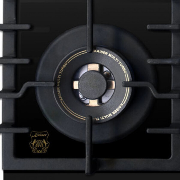 Независимая газовая поверхность Kaiser KCG 6335 Em Turbo — из линейки Empire. Сильная модель типа «газ на стекле», в дизайне которой черный цвет поверхности гармонирует с бронзой конфорок и ручек управления. Четыре чугунные крышки конфорок украшены графикой. Одна из конфорок — турбо с тройным рядом пламени 3,8 кВт комплектуется чугунным адаптером для вока или казана. Конфорки снабжены газ-контролем и электроподжигом.