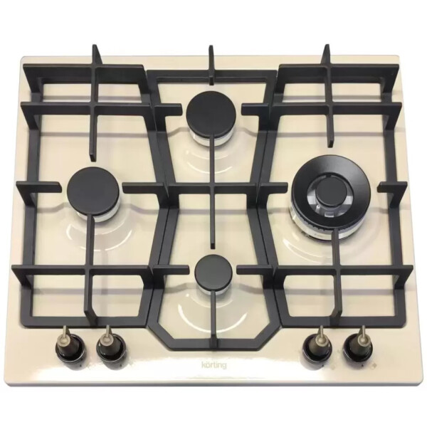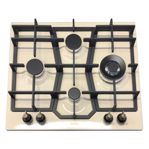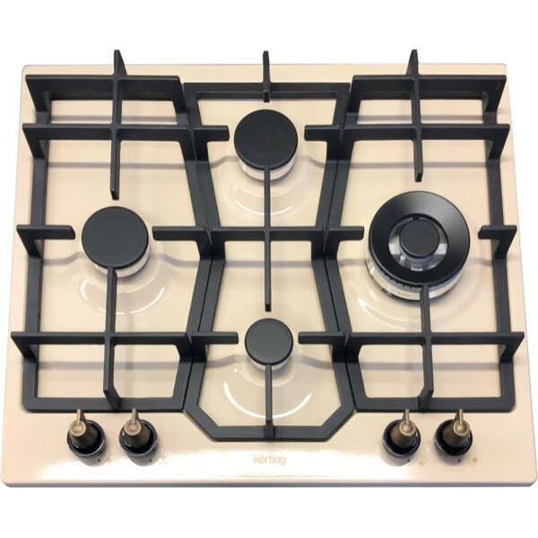 Варочная панель Korting HG 631 CTRB модель в стиле ретро с ромбовидным расположением конфорок. Эмаль имеет оттенок слоновой кости, который красиво сочетается с черными чугунными решетками для посуды и бронзовыми переключателями. Электроподжиг и газ-контроль делают использование удобным и безопасным.