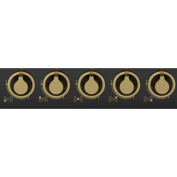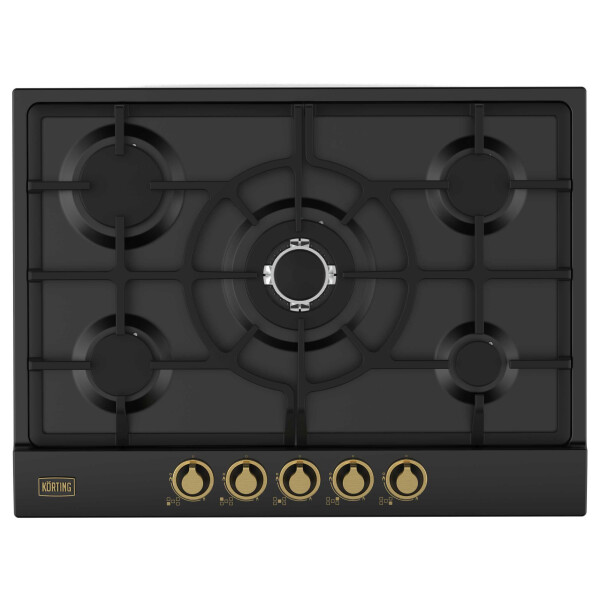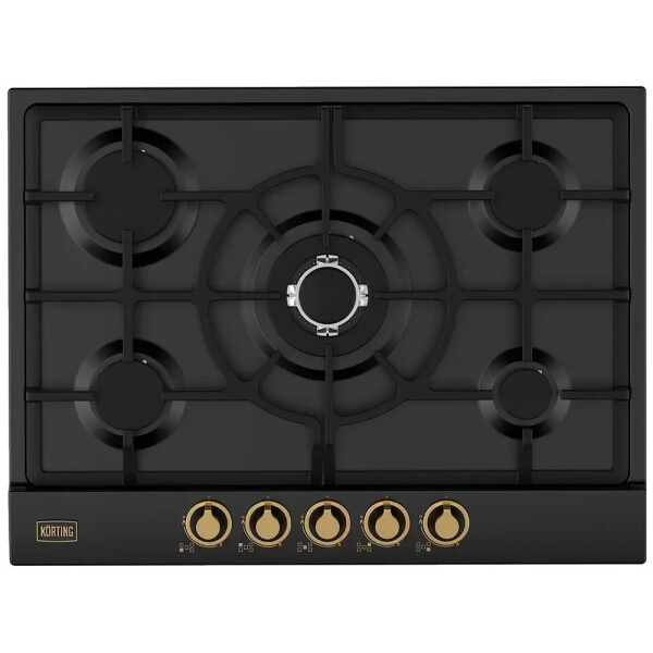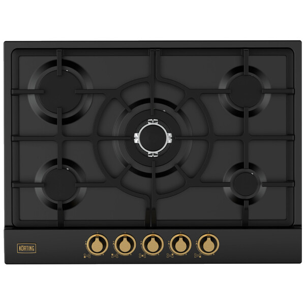 Встраиваемая газовая варочная панель HG 761 CTGN имеет приятный матовый черный цвет и стильные регуляторы золотистого цвета. Благодаря количеству конфорок, замечательно подойдет для большой семьи.