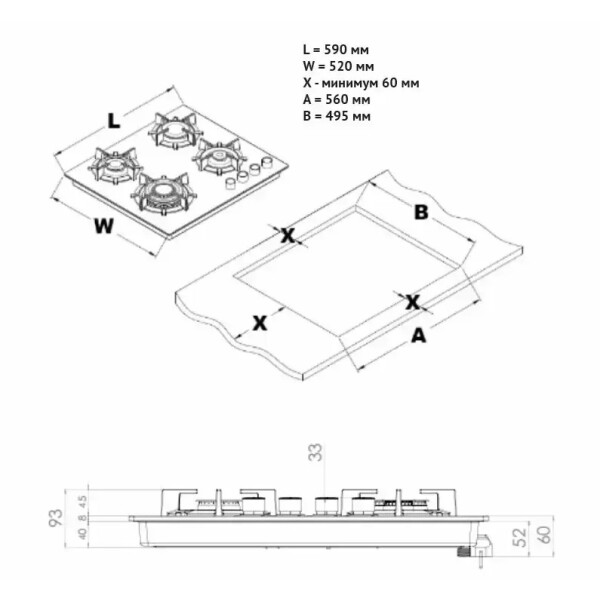 Поворотные регуляторы находятся вдали от мощной конфорки WOK. Это исключает случайное соприкосновение с горячими поверхностями в процессе приготовления, и регуляторы подвергаются меньшему тепловому воздействию.