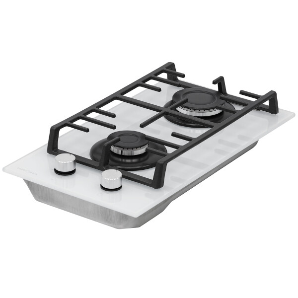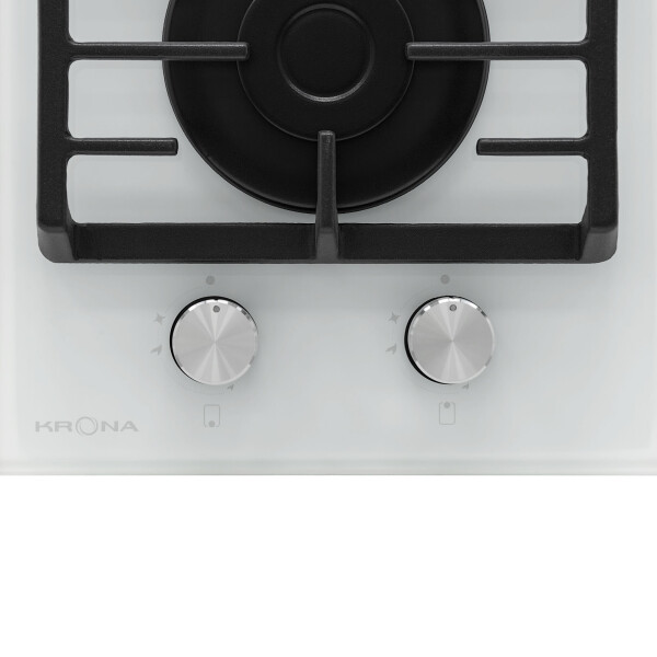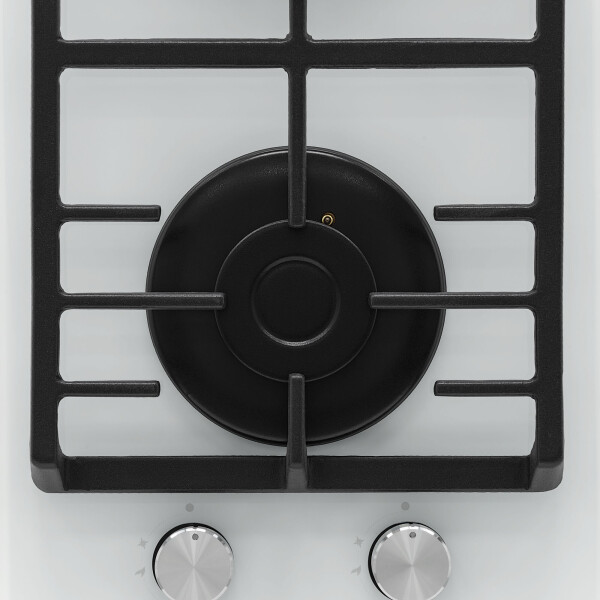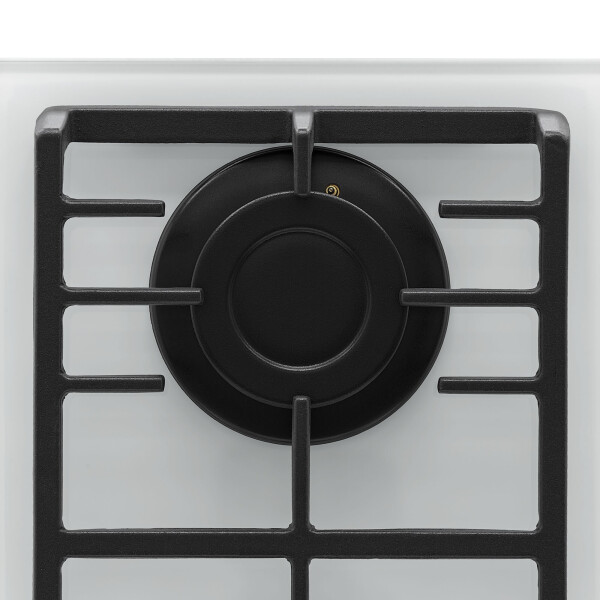 Модель выполнена из прочного закаленного стекла белого цвета и оснащена всеми необходимыми функциями безопасности и удобства: автоматический электроподжиг, Газ-контроль, конфорка повышенной мощности, регуляторы из негорючего полимера.