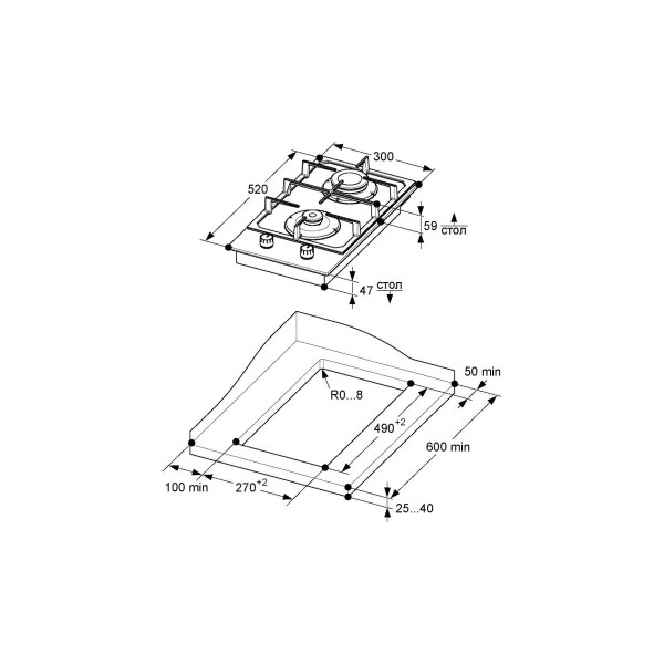 Kuche GGH 320 WF независимая газовая панель белого цвета, монтируемая в нишу размером 49х27 см при толщине столешницы 4,4 см.