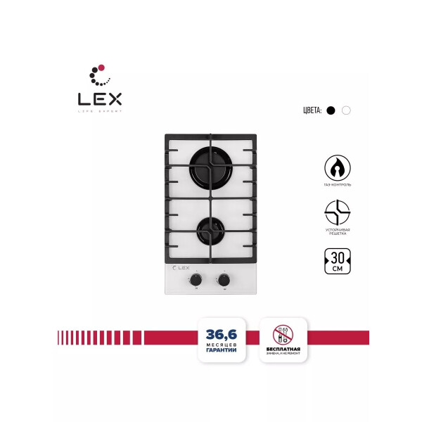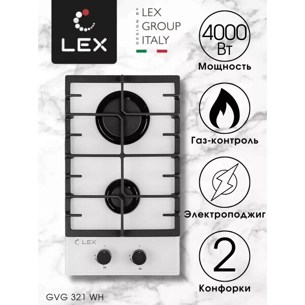 Газовая варочная поверхность Lex GVG 321 WH с независимым управлением оборудована двумя конфорками, одна из которых является экономичной, а вторая - повышенной мощности. Поджиг производится автоматически при повороте переключателя. Максимальную безопасность при работе обеспечивают устойчивые решетки и система газ-контроль, которая предотвращает подачу газа в случае задувания пламени.