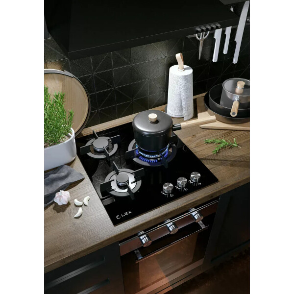 Газовая варочная поверхность LEX GVG 430 BL станет прекрасным дополнением Вашей кухни. Она имеет оптимальные габариты, отлично впишется в планировку и не займет слишком много места. Ширина для встраивания – 40 см.
