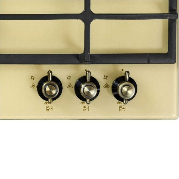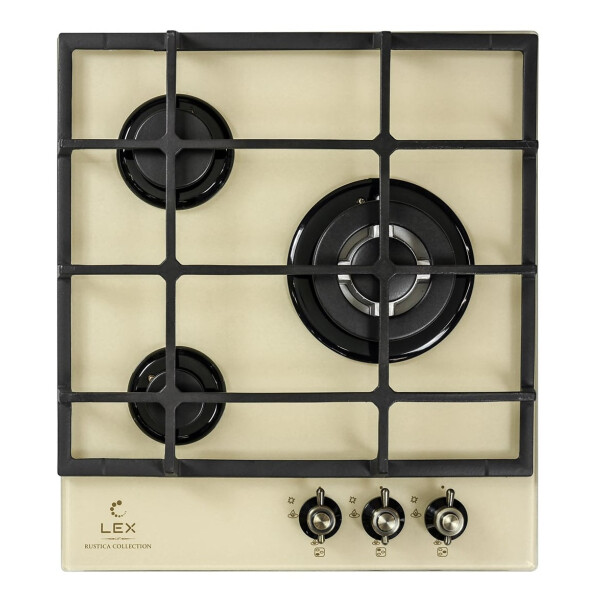 LEX GVG 431C IV - независимая встраиваемая газовая панель из стекла бежевого цвета, с чугунной решеткой, с удобным расположением горелок, с автоматическим электроподжигом.