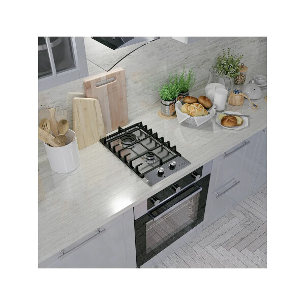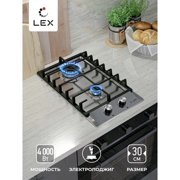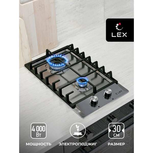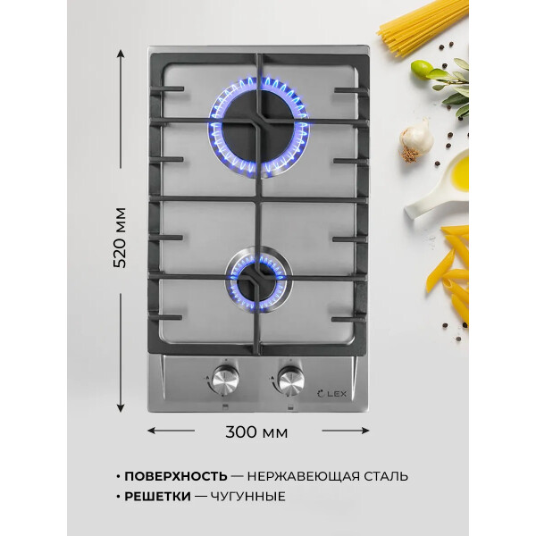 Газовая варочная поверхность Lex GVS 321 IX с независимым управлением оборудована двумя конфорками. Поджиг производится автоматически при повороте переключателя. Максимальную безопасность при работе обеспечивают устойчивые решетки.
