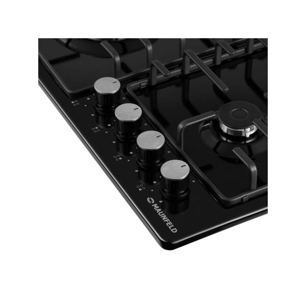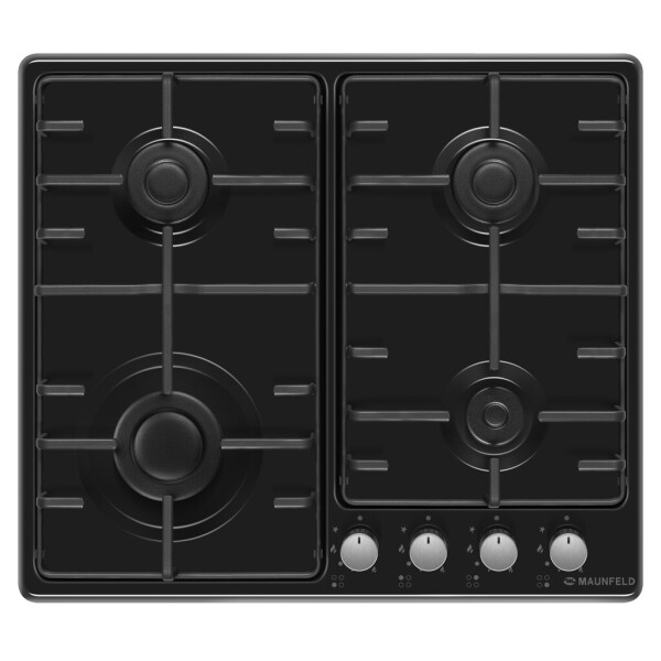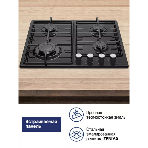 Панель выполнена из металла, покрытого термостойкой прочной эмалью черного цвета. Четыре стандартные конфорки мощностью 1000 Вт, 1700 Вт, 1700 Вт и 2600 Вт. Конфорки спроектированы таким образом, что огонь не перегревает ни эмалированные решетки, ни ручки управления.