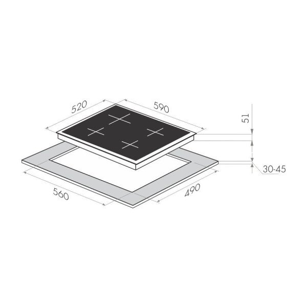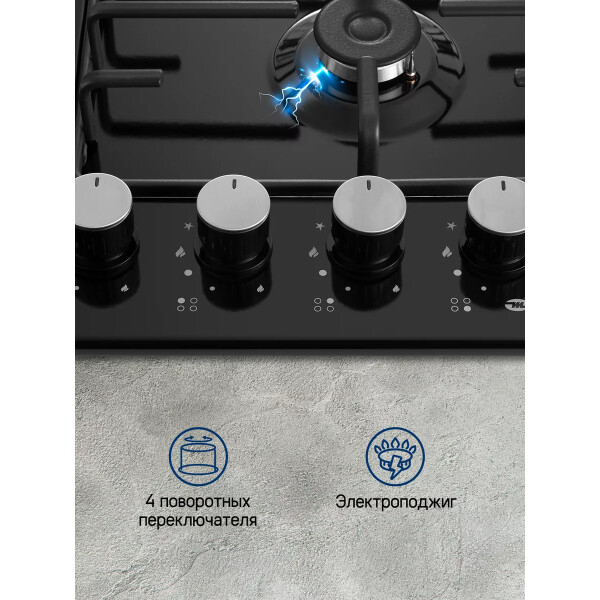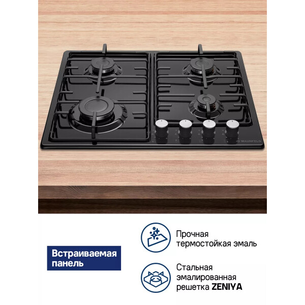 Варочная панель выполнена из металла с покрытием эмалью, устойчивой к внешнему воздействию.