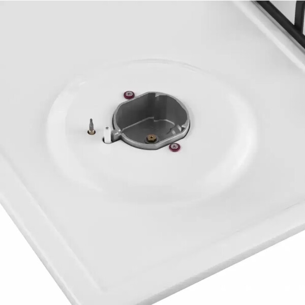 Панель выполнена из металла, покрытого термостойкой прочной эмалью белого цвета. Конфорки спроектированы таким образом, что огонь не перегревает ни эмалированные решетки, ни ручки управления.