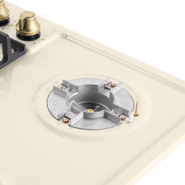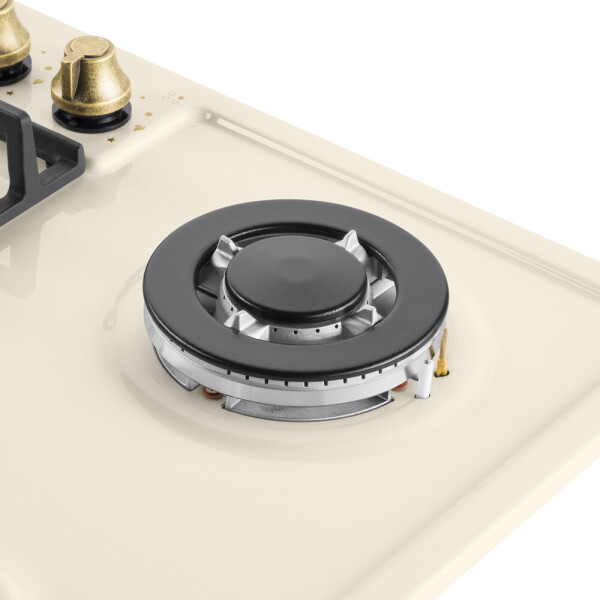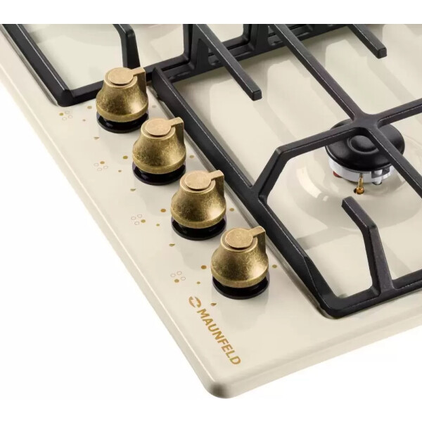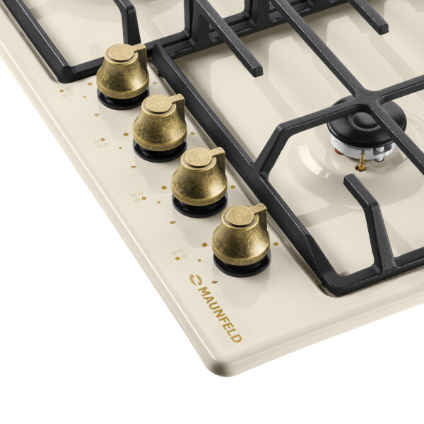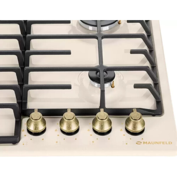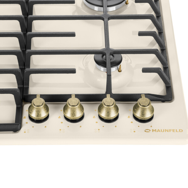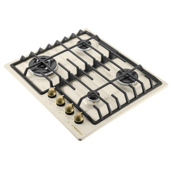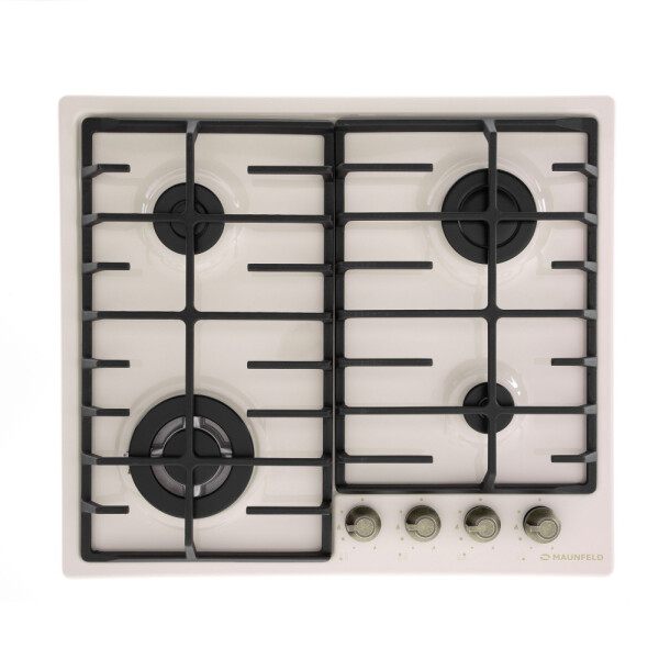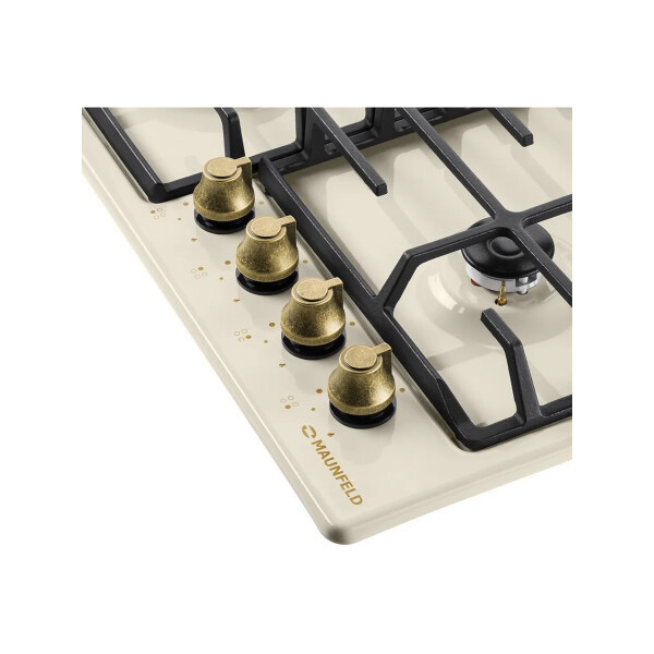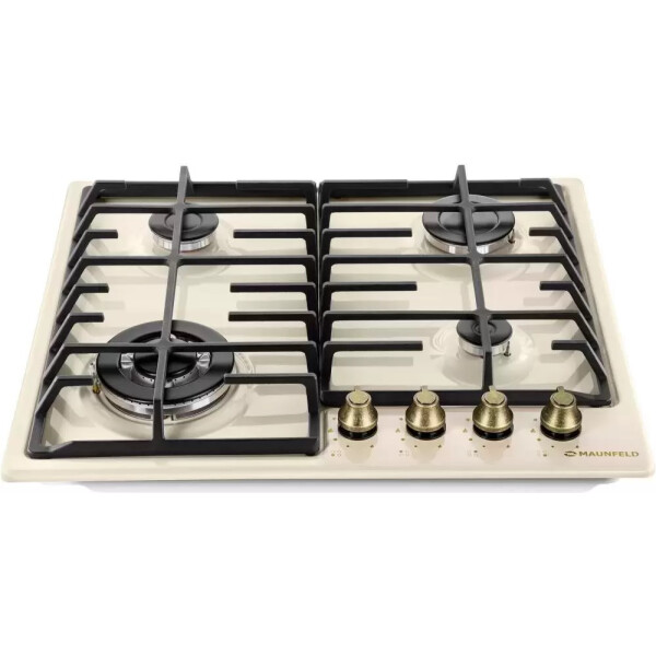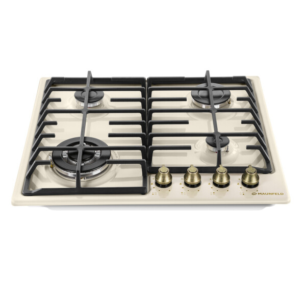 Встраиваемая газовая панель Maunfeld EGHE.64.63CBG.R/G - это 4 итальянских конфорки мощностью 3000, 1700, 1700, 1000 Вт. с функцией автоматического электроподжига на панели из эмалированного металла с чугунными решетками.