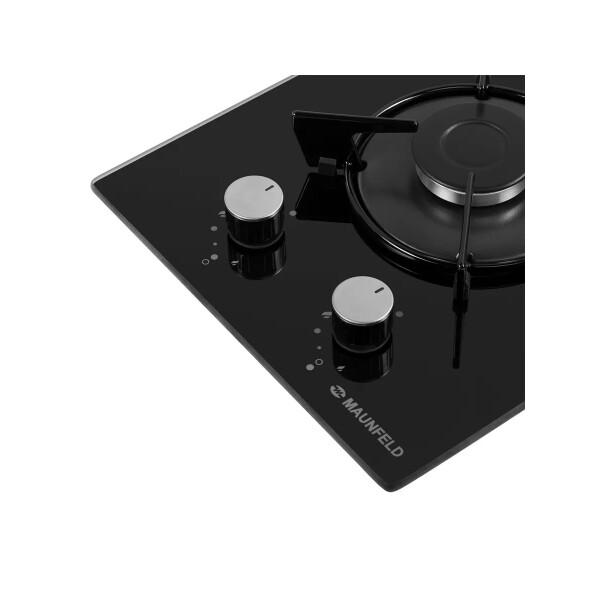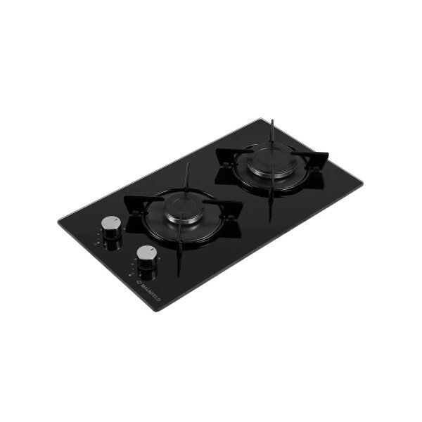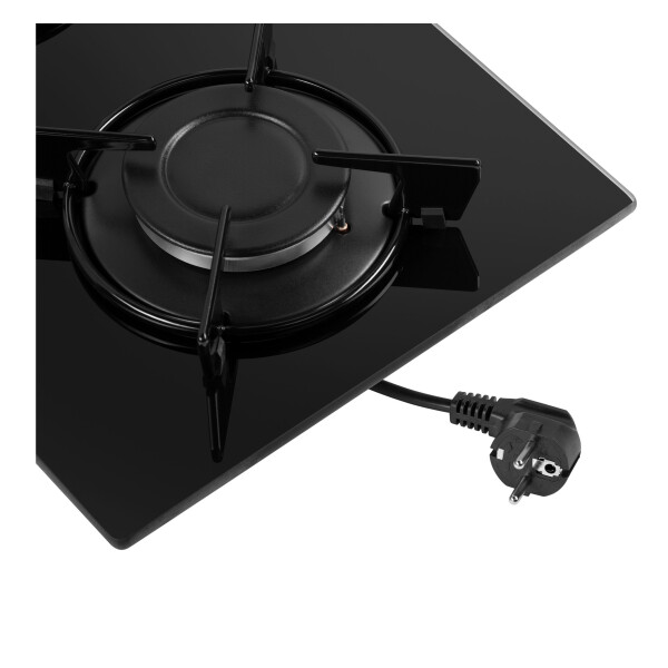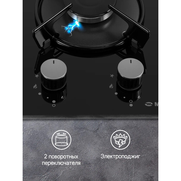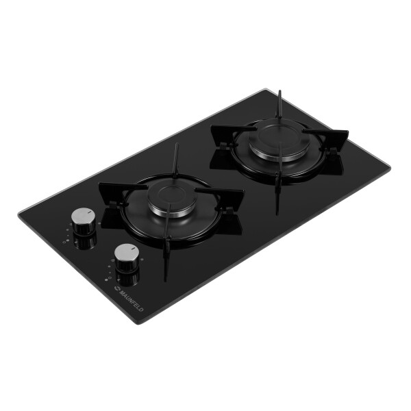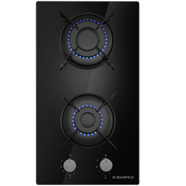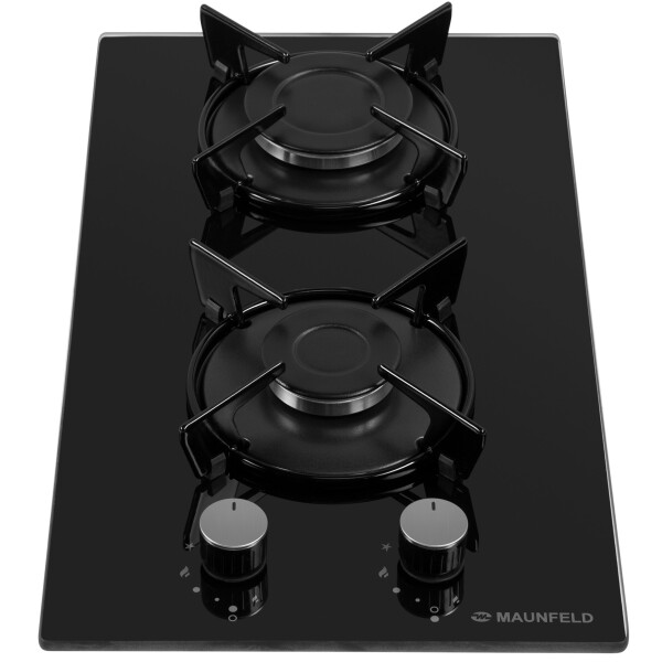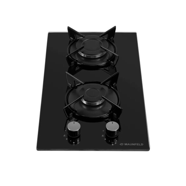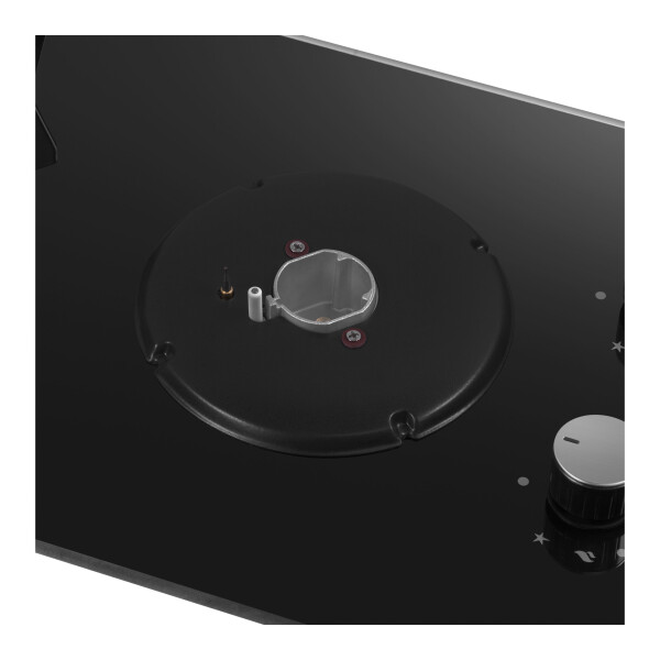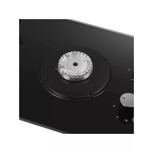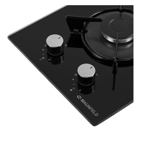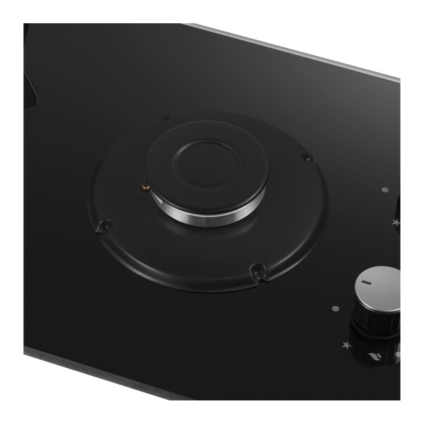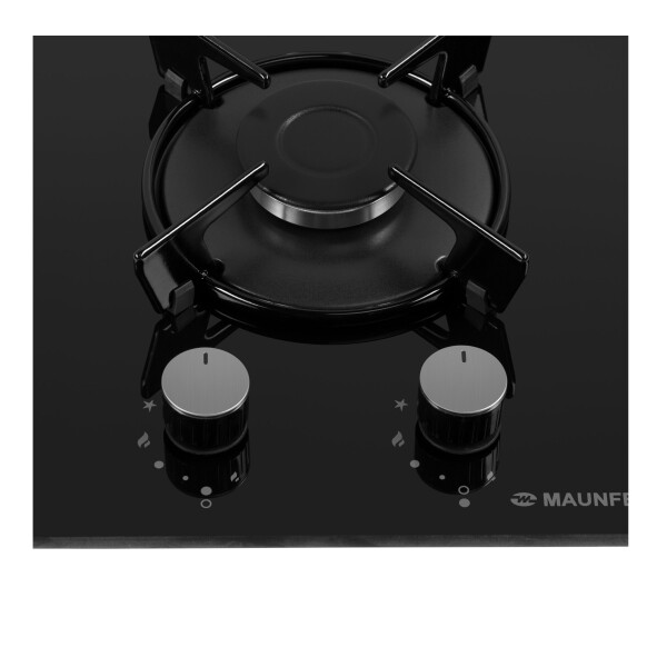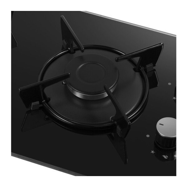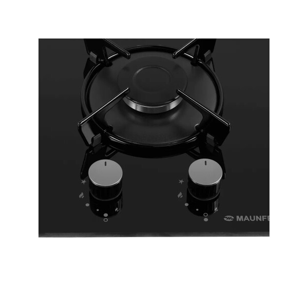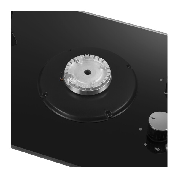 Панель выполнена из закаленного стекла черного цвета толщиной 8 мм. В данной модели установлены высококачественные горелки ALBEK. Две стандартные конфорки разного диаметра с мощностью 1700 Вт и 2600 Вт спроектированы таким образом, что огонь не перегревает ни решетки, ни ручки управления.