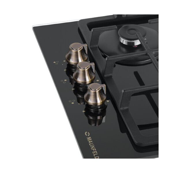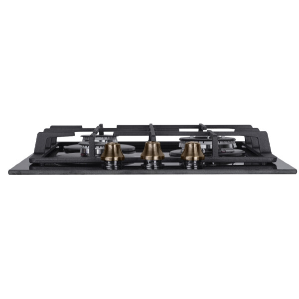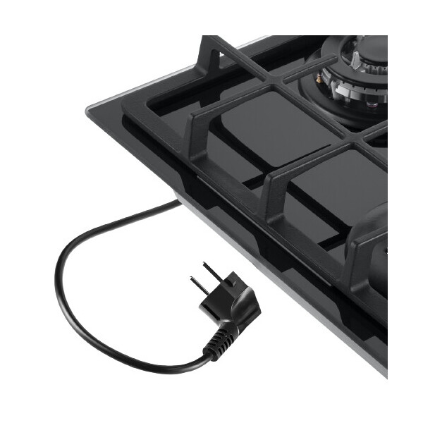 Чугунные решетки, газ-контроль, электроподжиг автоматический, WOK-горелка, тяжелые цельнометаллические полнотелые ручки управления, итальянские горелки SABAF, возможность работы от магистрального газа и газа в баллоне (тип G30).