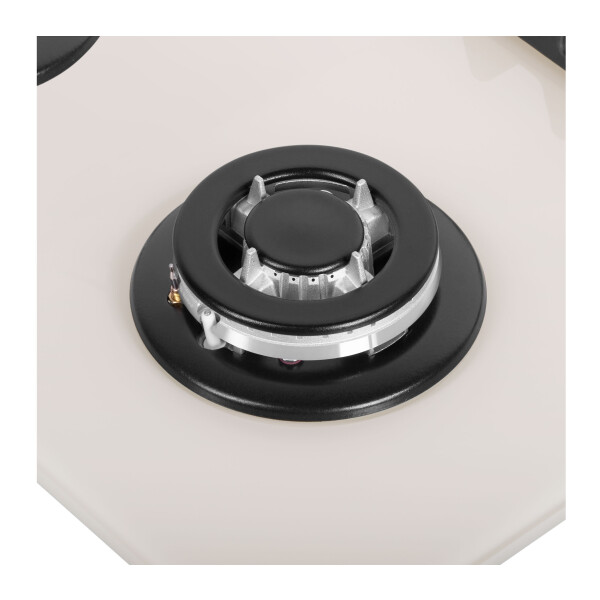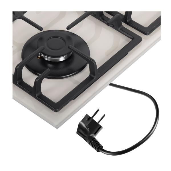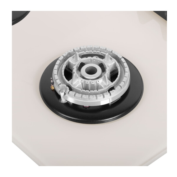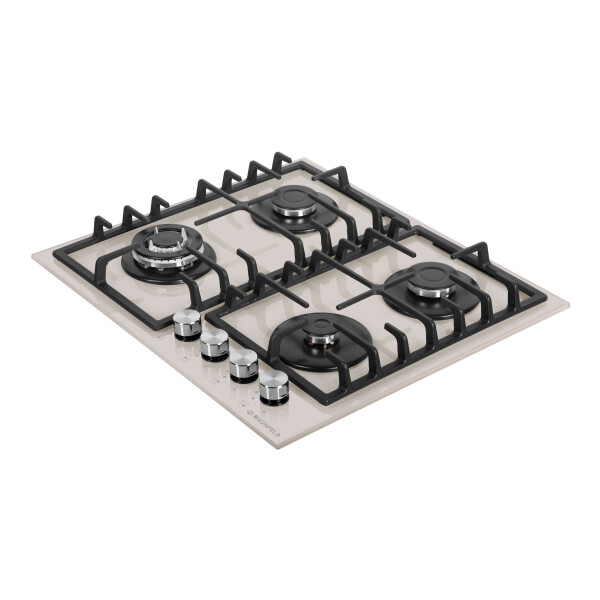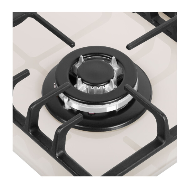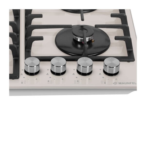 Основа панели закаленное ударопрочнон стекло бежевого цвета немецкого производителя SCHOTT. Чугунные решетки обеспечит максимальную устойчивость посуды, а система газ-контроль позаботится о Вашей безопасности, если пламя случайно погаснет.