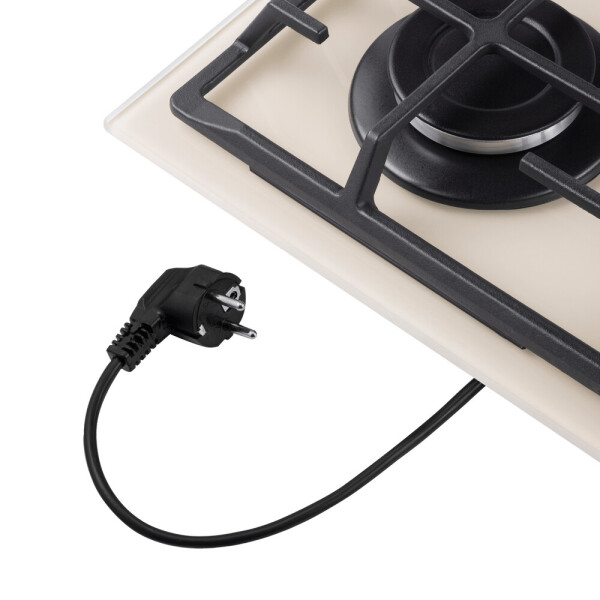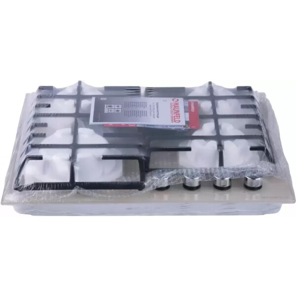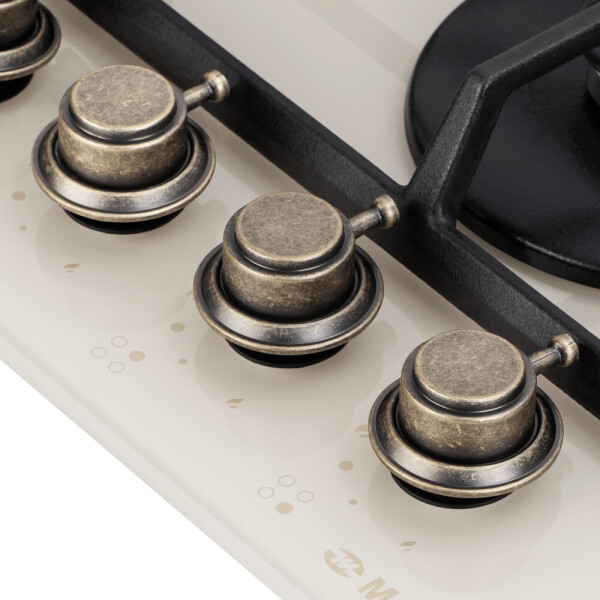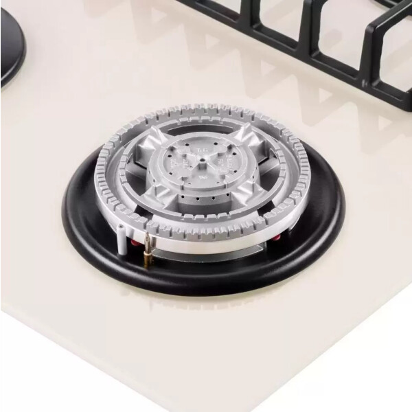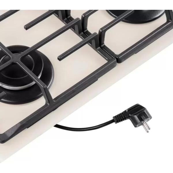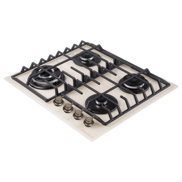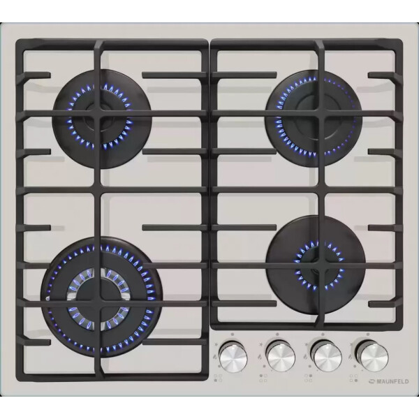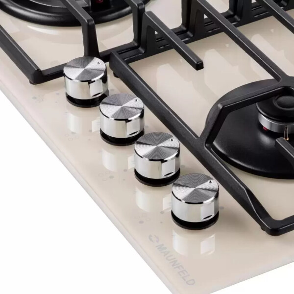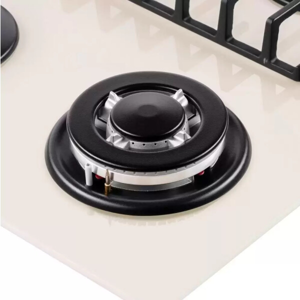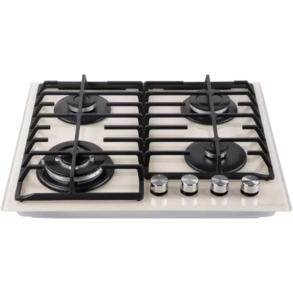 4 газовые итальянские конфорки: 3800, 1700, 1700, 1000 Вт. Фронтальное управление, 4 поворотных переключателя, автоматический электроподжиг под ручкой управления, возможность работы от магистрального газа и газа в балоне (тип G30).