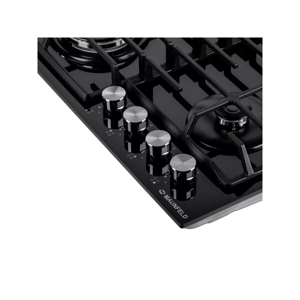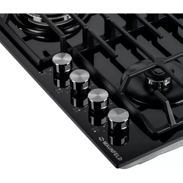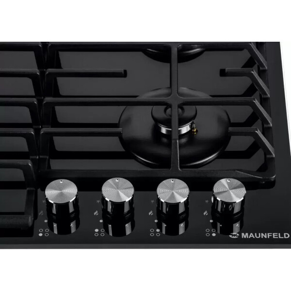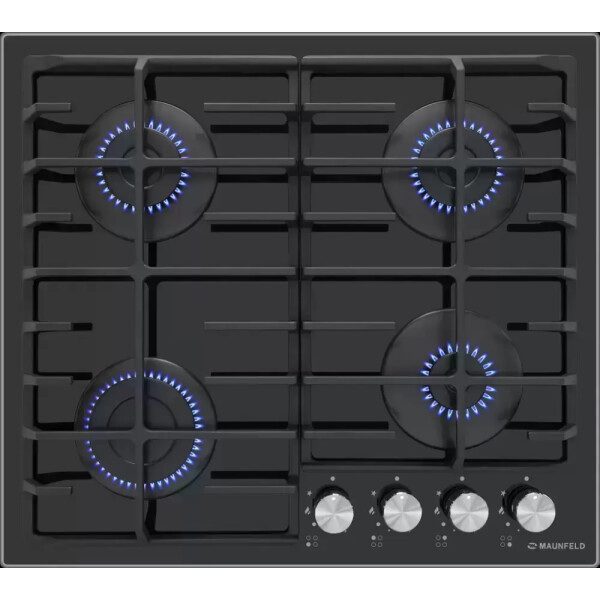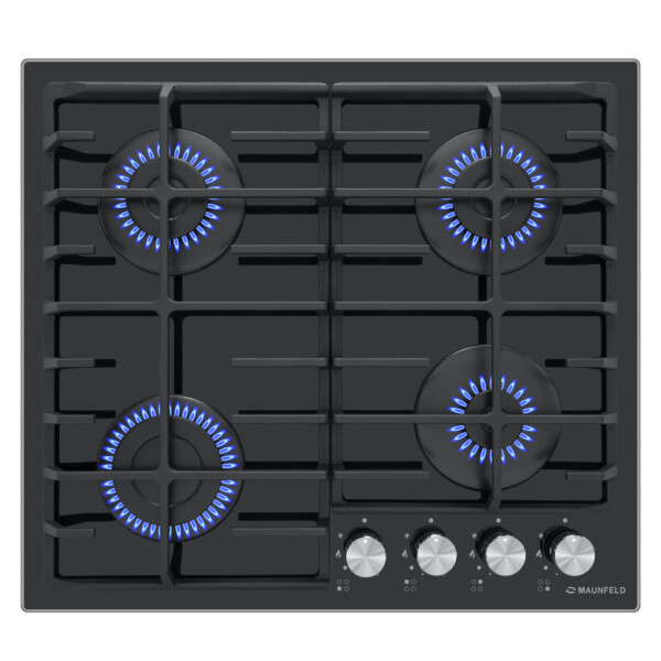 Встраиваемая газовая варочная панель Maunfeld EGHG.64.6CB/G - это 4 газовые итальянские конфорки 2600, 1700, 1700, 1000 Вт. с функцией автоматического электроподжига на панели из эмалированного металла с чугунными решетками.