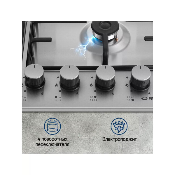 Автоматический электроподжиг расположен в ручке конфорки.