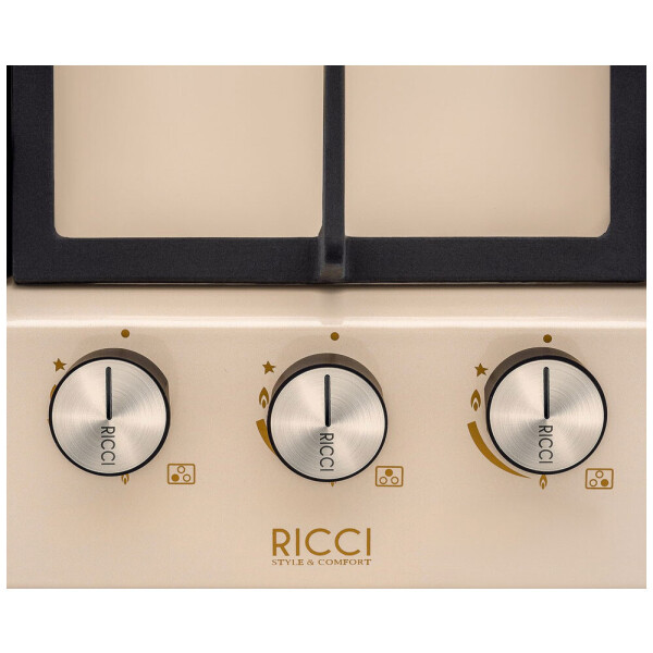 Встраиваемая газовая варочная панель Ricci HBS 3701R выполнена в ретро-стиле и имеет приятный бежевый оттенок. Рабочая поверхность выполнена из эмали, а решетки из чугуна, что обеспечит долгий срок жизни даже при не самым подобающем уходе.