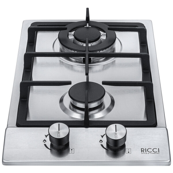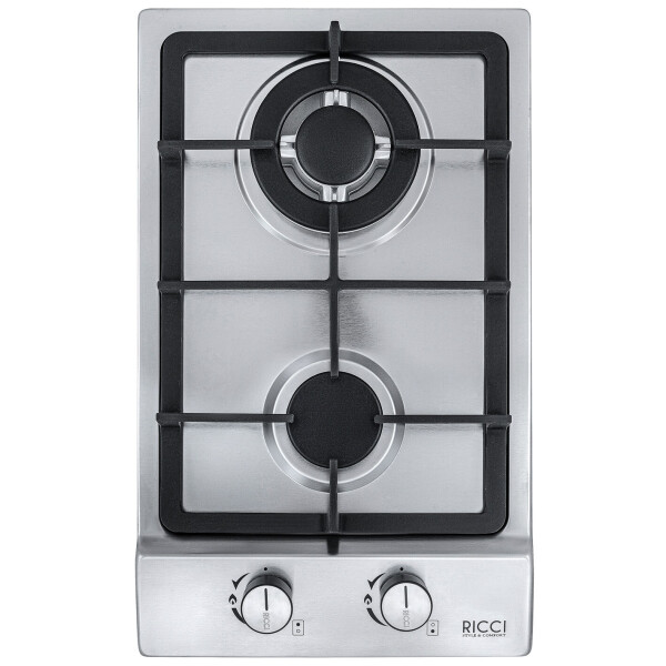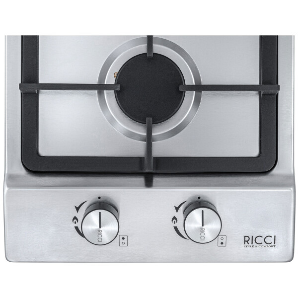 Газовая варочная панель Ricci Ricci HBS2301. Две надежные конфорки помогут вам готовить различные блюда. Выбор режима осуществляется при помощи поворотных переключателей.