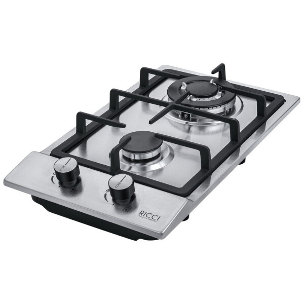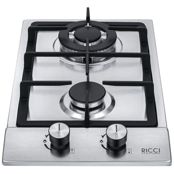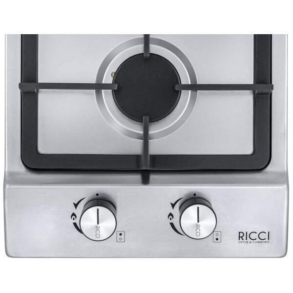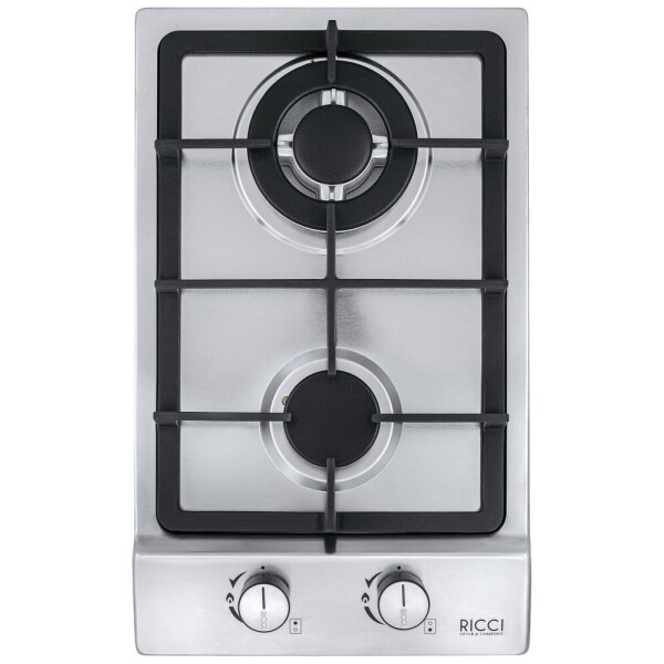 Газовая варочная панель Ricci Ricci HBS2301D. Две надежные конфорки помогут вам готовить различные блюда. Выбор режима осуществляется при помощи поворотных переключателей.