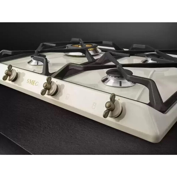 Газовая варочная панель Smeg SRV864POGH сочетает в себе стильный дизайн и удобный функционал. Кремовый цвет корпуса гармонирует с любым интерьером. Модель максимально безопасна при использовании благодаря опции «Газ-контроль».