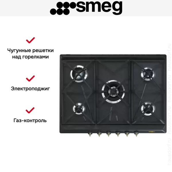 Газовая варочная панель Smeg SRV876AOGH оснащена 5 газовыми конфорками, одна из которых повышенной мощности. Удобные поворотные переключатели и функция автоматического электроподжига обеспечивают комфорт эксплуатации. Наличие технологии контроля газа гарантирует безопасную работу прибора.