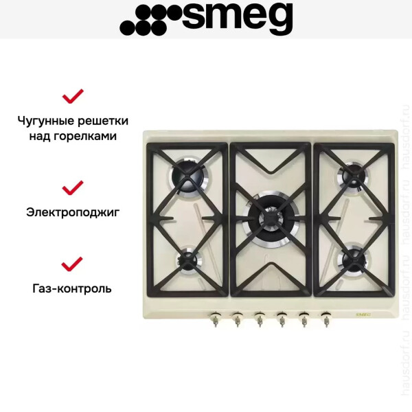 Газовая варочная панель Smeg SRV876POGH выполнена в кремовом цвете и отличается оригинальным дизайном. Прибор оснащен 5 газовыми конфорками, одна из которых повышенной мощности. Функция автоматического электроподжига обеспечивает простоту и комфорт эксплуатации. Наличие технологии контроля газа гарантирует безопасную и надежную работу прибора.