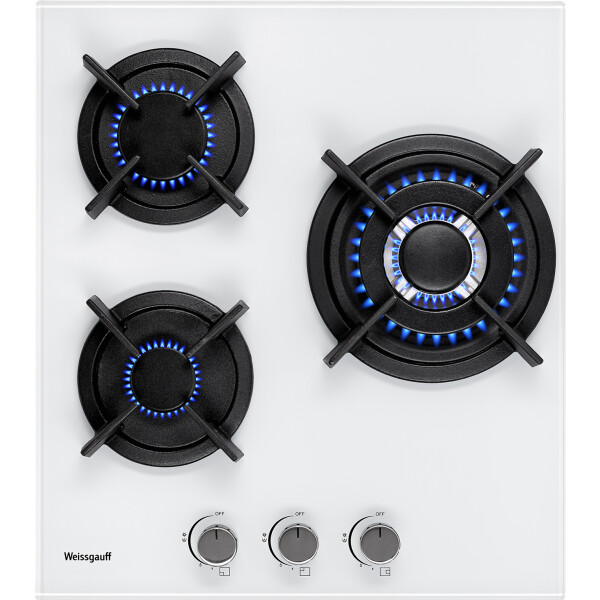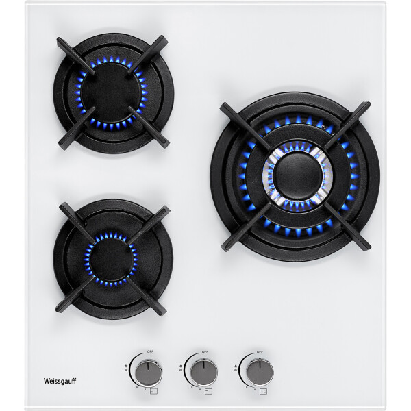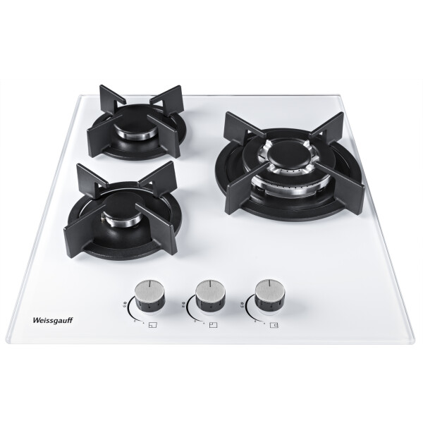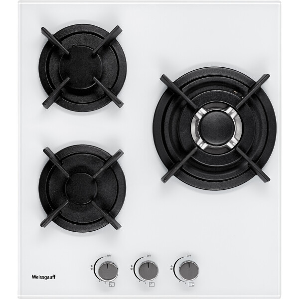 Встраиваемая независимая газовая панель Weissgauff шириной 45 см, исполненная в закалённом белом стекле - это стильное и компактное решение для вашей кухни!