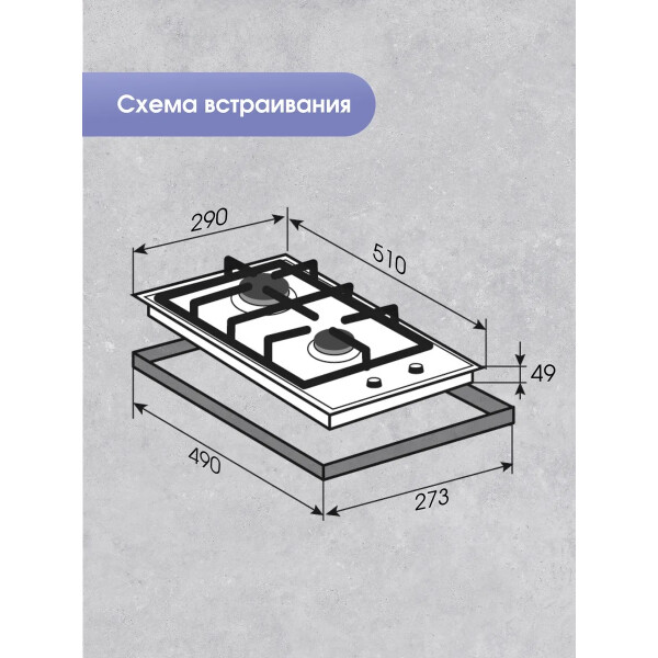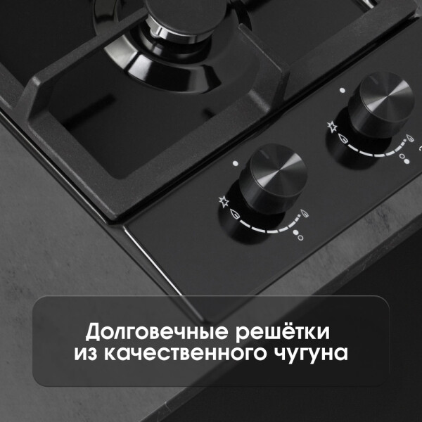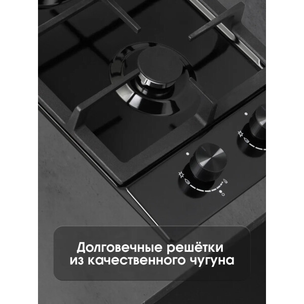Панель прекрасно поместится как на кухне самых небольших размеров, так и будет удобна на даче или в качестве второй поверхности на большой кухне. Эргономичные линии решетки, удобно расположенные элементы управления. За безопасность использования этой поверхности отвечает система газ-контроль. Каждый переключатель оснащен электроподжигом.
