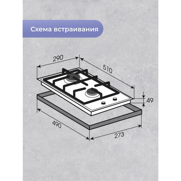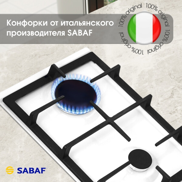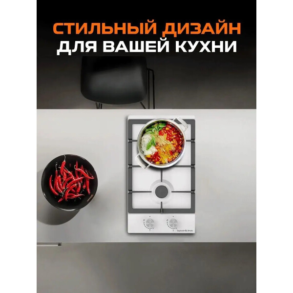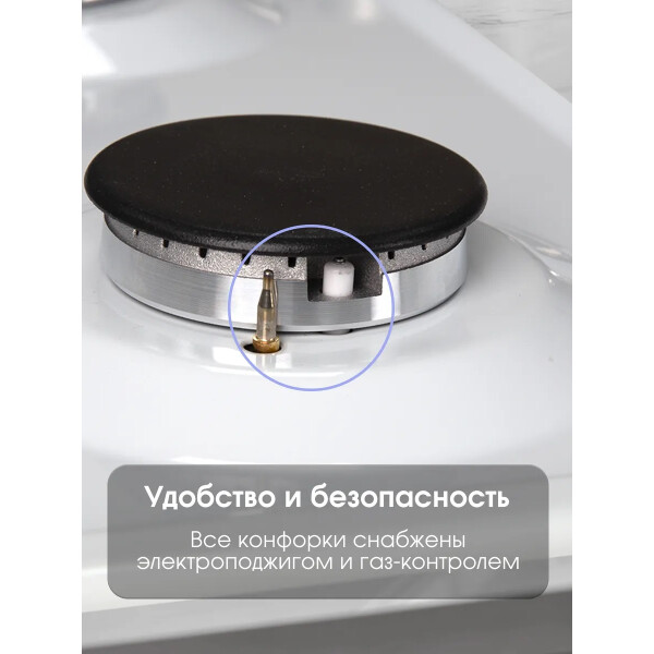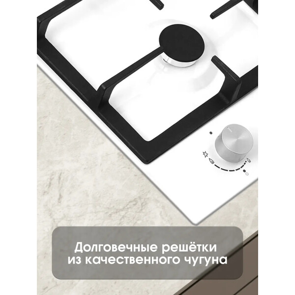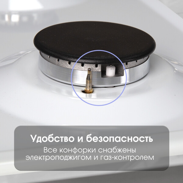 Панель прекрасно поместится как на кухне самых небольших размеров, так и будет удобна на даче или в качестве второй поверхности на большой кухне. Эргономичные линии решетки, удобно расположенные элементы управления. За безопасность использования этой поверхности отвечает система газ-контроль. Каждый переключатель оснащен электроподжигом.