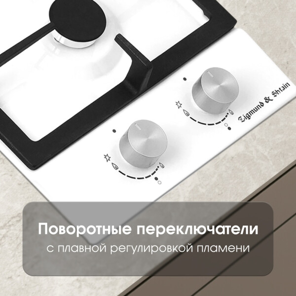 Встраиваемая газовая варочная панель Zigmund & Shtain G 14.3 W - это строгий простой дизайн с чугунной решеткой, будет смотреться уместно в интерьере любой современной кухни, а подключается она как к магистральному, так и к баллонному газу.