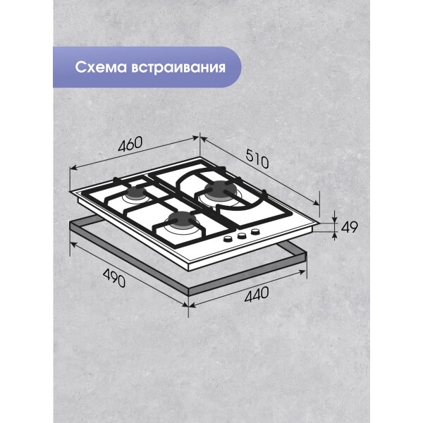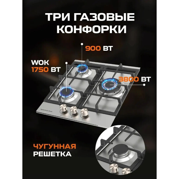 | Количество газовых конфорок | 3