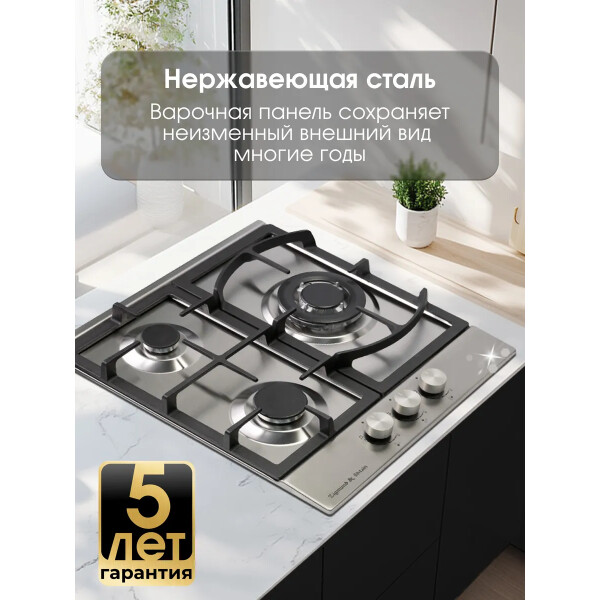 Встраиваемая газовая варочная панель Zigmund & Shtain G 14.4 S - это удачное сочетание органичного современного дизайна и функционала, рукоятки управления дополняют современный выверенный облик модели и расположения этих рукояток защищают их от перегрева и деформации при длительном термическом воздействии в процессе приготовления еды.