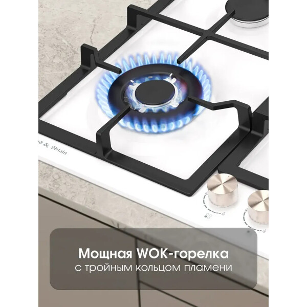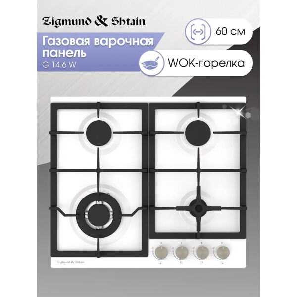 Встраиваемая газовая варочная панель Zigmund & Shtain G 14.6 W создаст на кухне волшебную атмосферу эксклюзивности и комфорта. Сверхмощная конфорка WOK, благодаря которой можно готовить блюда о которых раньше можно было мечтать. Она отличается от обыкновенной повышенной мощности не только тройным пламенем, а также возможностью установки специального адаптера для посуды, что позволяет ставить посуду со сферическим дном и большого диаметра, благодаря чему время приготовления сокращается. Первоначально они использовались в восточной кухне, в которой применяется посуда с тонким и округлым суженным книзу дном, это позволяет пище очень быстро готовиться.