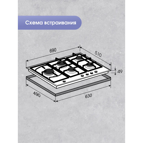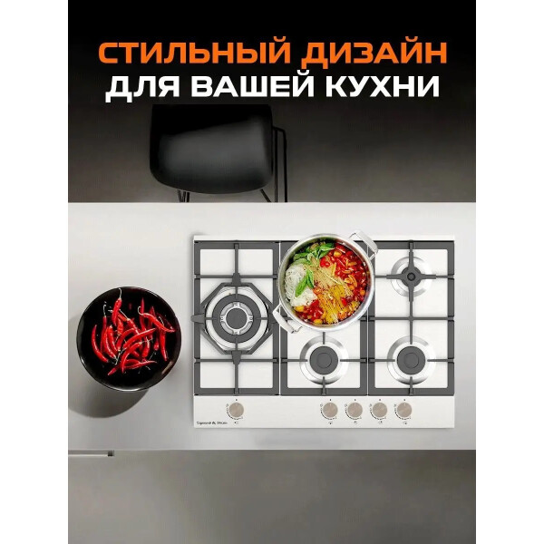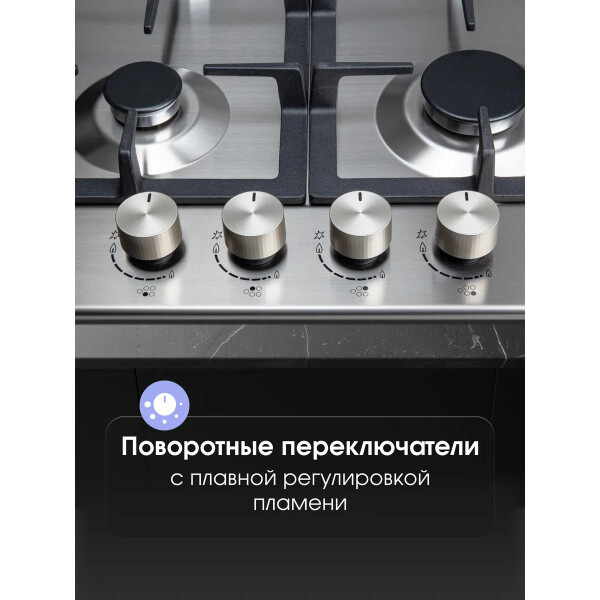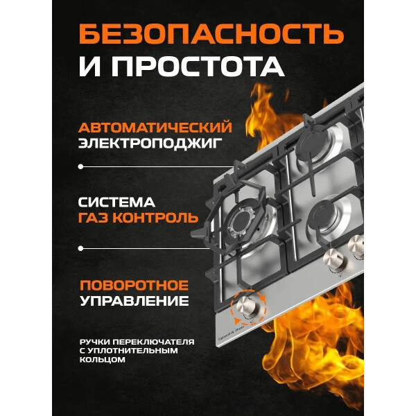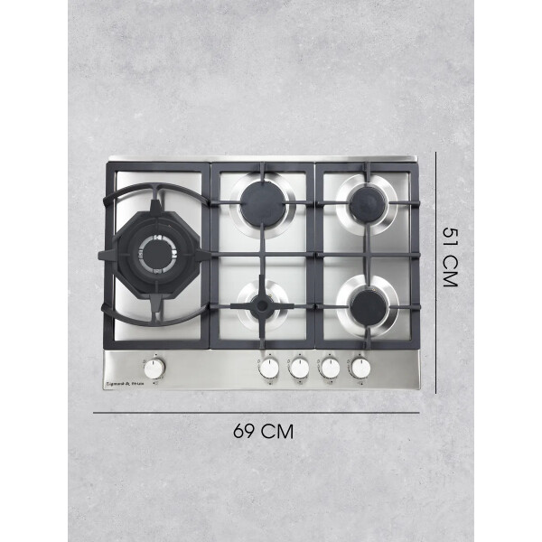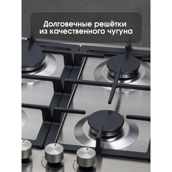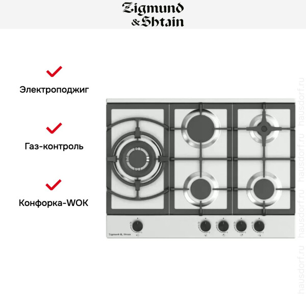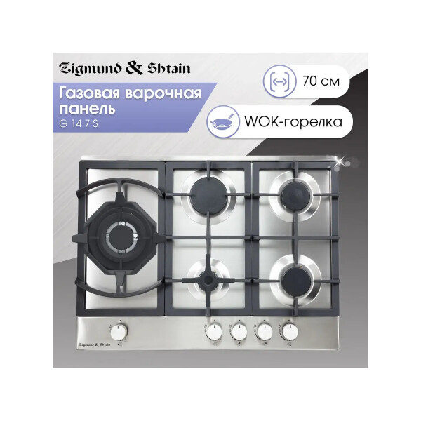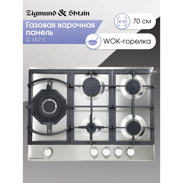 Варочная панель Zigmund Shtain G 14.7 S цвет нержавеющая сталь c Шириной 70 см, Чугунная решётка обеспечит максимальную устойчивость посуды, а система газ-контроль позаботиться о Вашей безопасности, если пламя случайно погаснет.