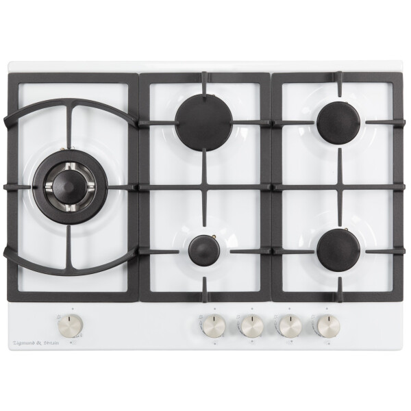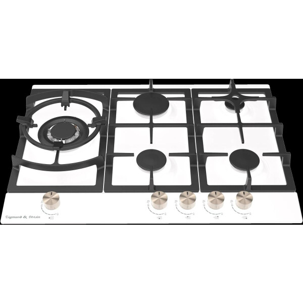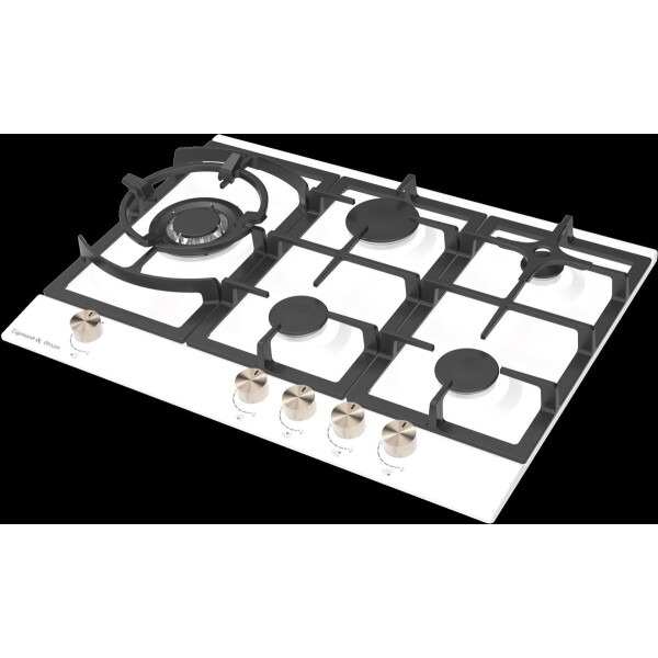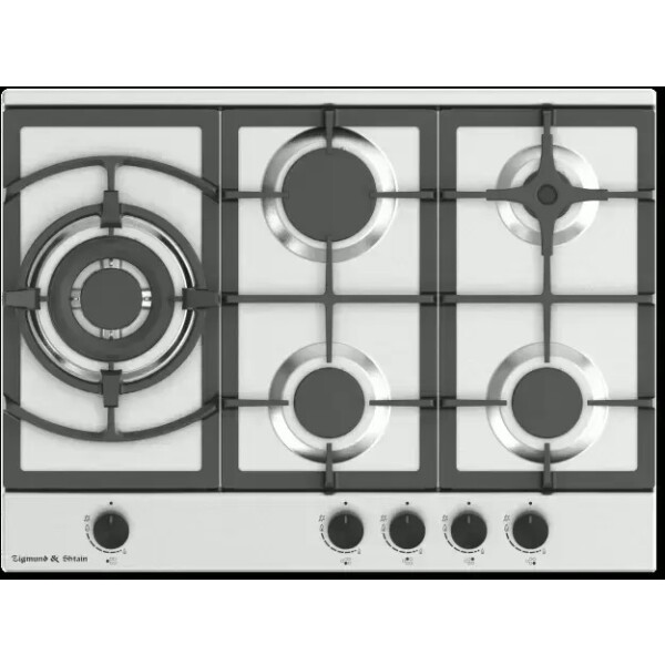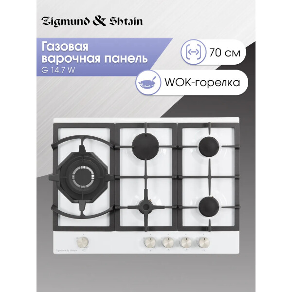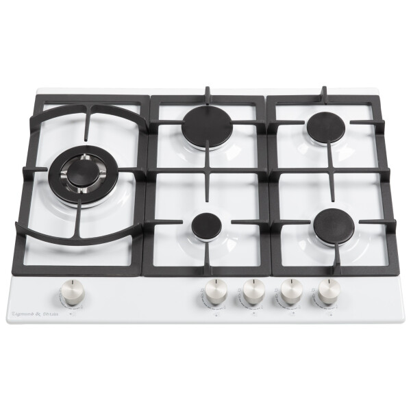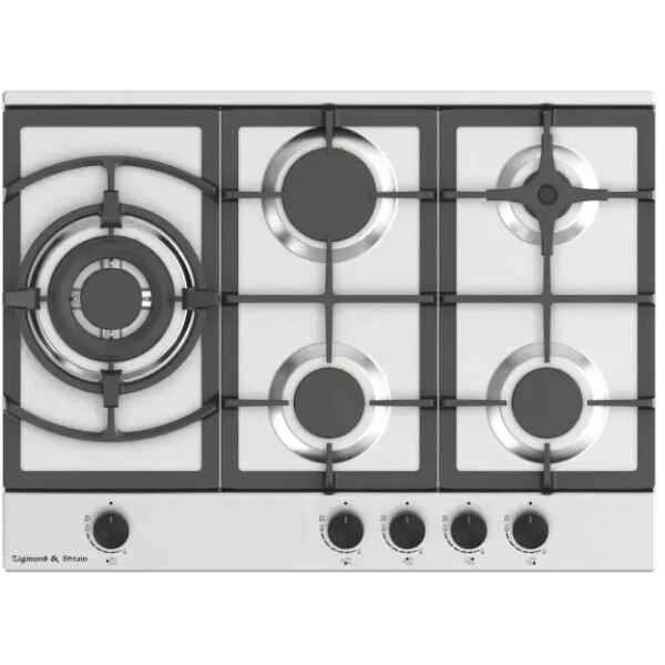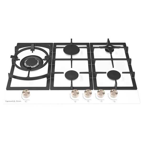 Встраиваемая газовая варочная панель Zigmund & Shtain G 14.7 W имеет 5 конфорок, одна из которых WOK мощностью 3800 Вт. Панель укомплектована тремя чугунными решетками. Переключатели расположены спереди и имеют электроподжиг в каждой ручке. Каждая конфорка оснащена устройством контроля наличия пламени (газконтроль), которое останавливает подачу газа в случае исчезновения пламени.