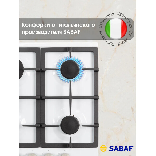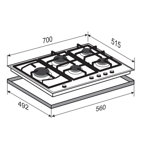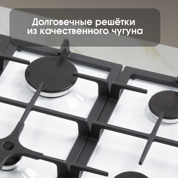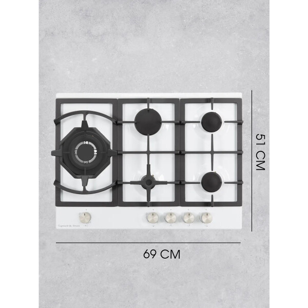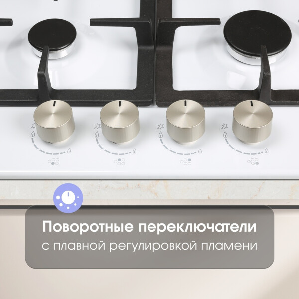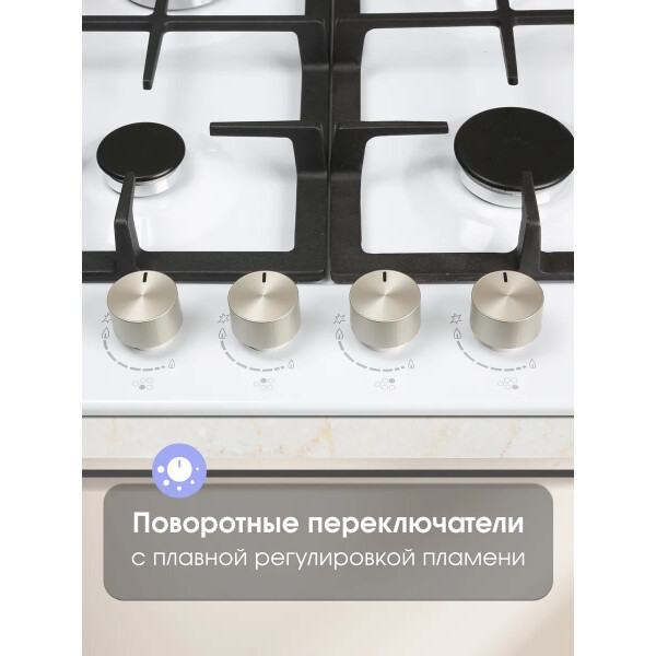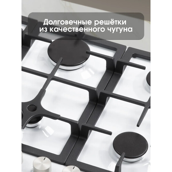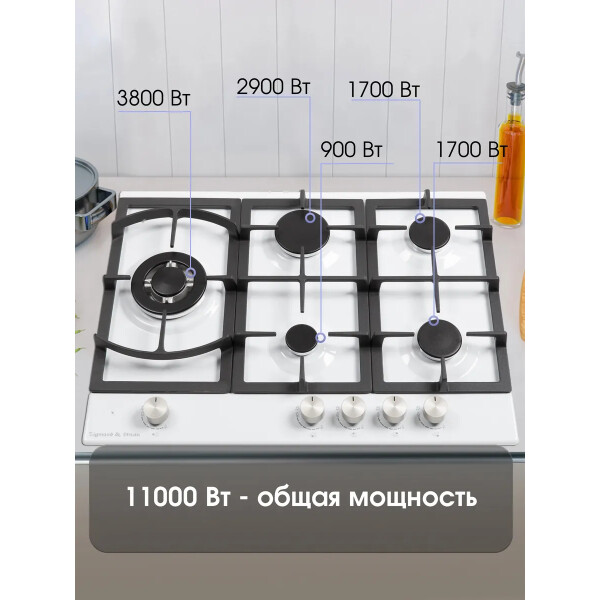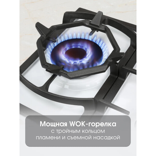 Встраиваемая газовая варочная панель Zigmund & Shtain G 14.7 W имеет 5 конфорок, одна из которых WOK мощностью 3800 Вт. Панель укомплектована тремя чугунными решетками. Переключатели расположены спереди и имеют электроподжиг в каждой ручке. Каждая конфорка оснащена устройством контроля наличия пламени (газконтроль), которое останавливает подачу газа в случае исчезновения пламени.