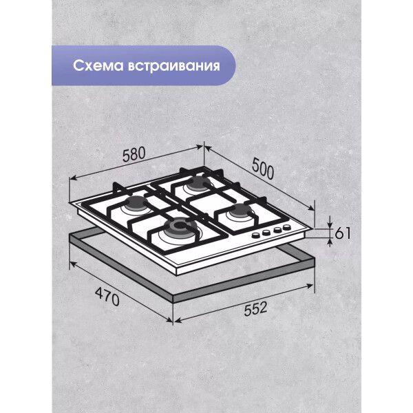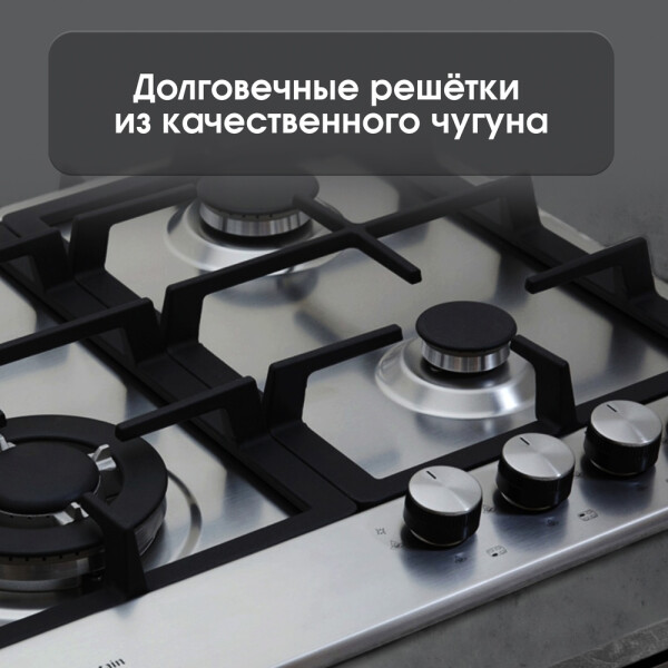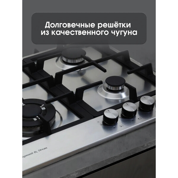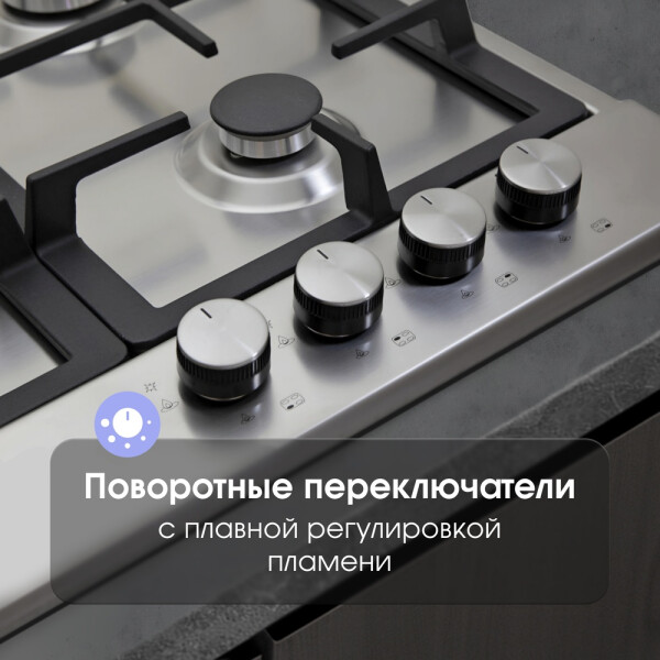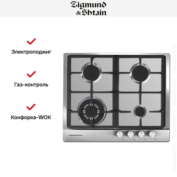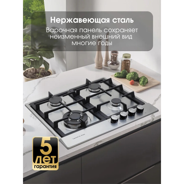 Встраиваемая газовая варочная панель Zigmund Shtain GN 128.61 S из нержавеющей стали, с защитным покрытием против отпечатков пальцев станет универсальным решением практически для любой кухни. В ручки управления уровнем подачи газа встроена электронная система контроля электроподжига. Чтобы зажечь конфорку, просто надавите на ручку и поверните ее, регулируя уровень подачи газа. Данная функция срабатывает автоматически после первого нажатия на ручку.