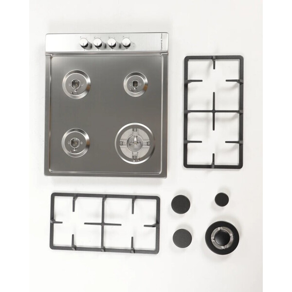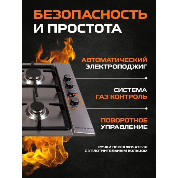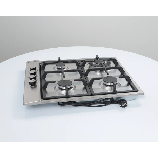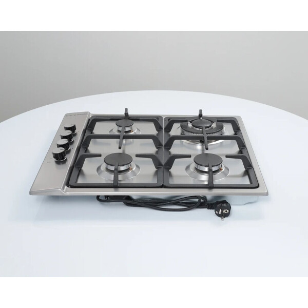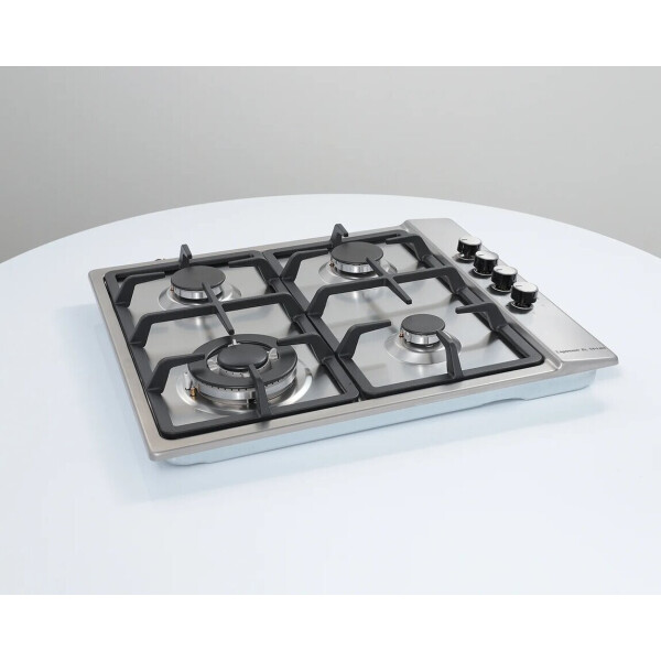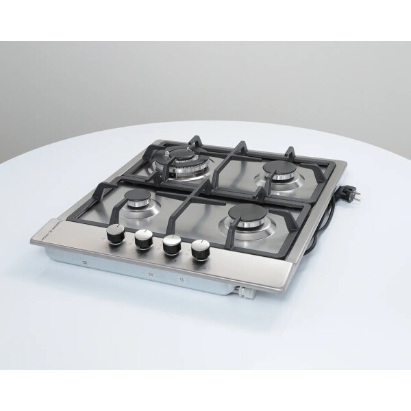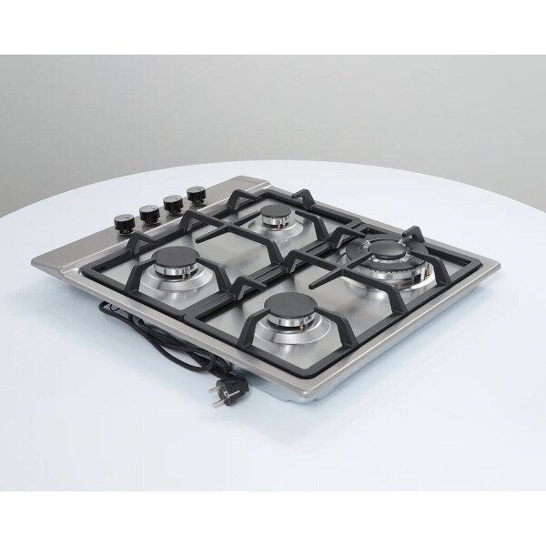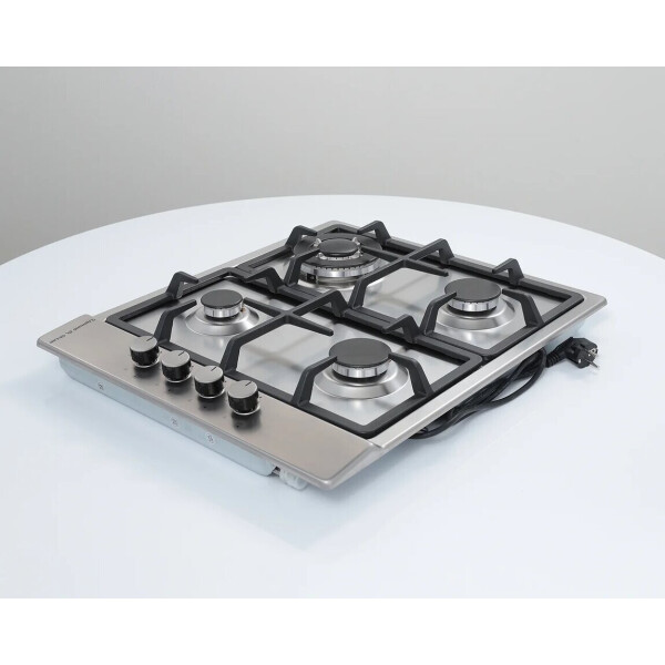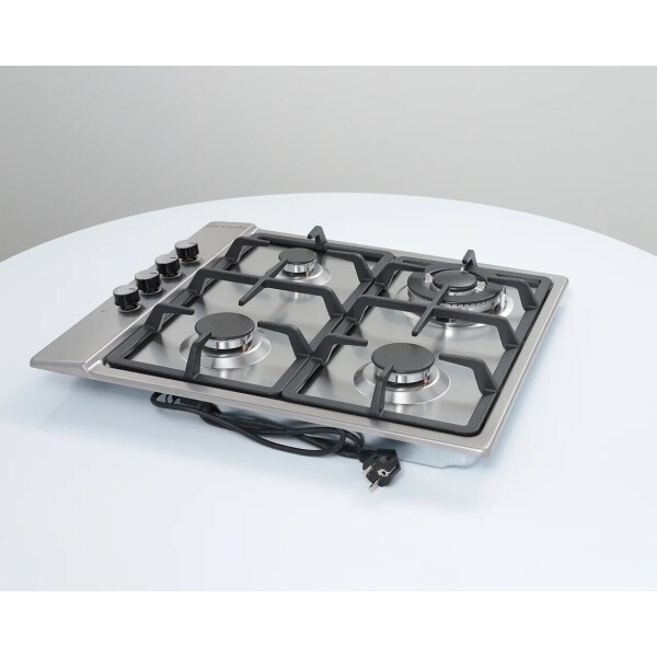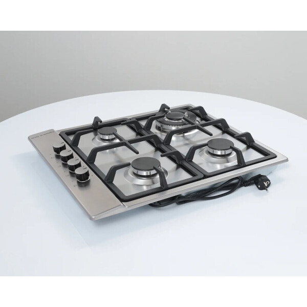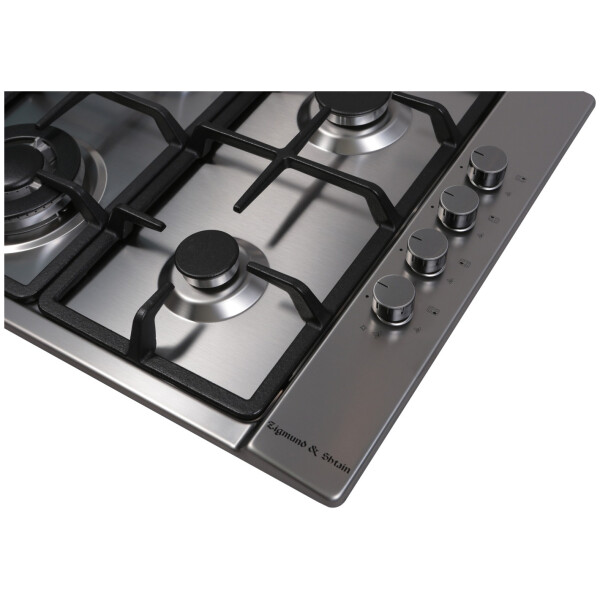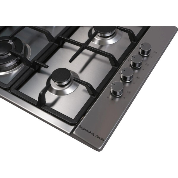 Каждая конфорка варочной поверхности Zigmund & Shtain GN 98.61 S укомплектована решеткой для установки посуды, выполненной из стали с жаростойким покрытием. На панели газового прибора находятся не только конфорки, но и органы механического управления - поворотные регуляторы, совмещенные с системой электроподжига. О безопасности использования этой встраиваемой кухонной техники позаботится система газ-контроля. Она предотвращает любые возможные утечки газа.