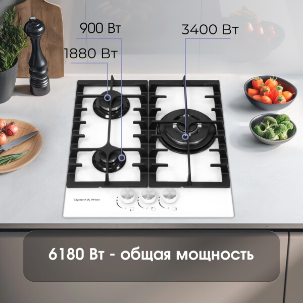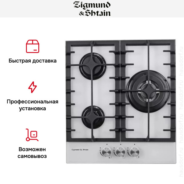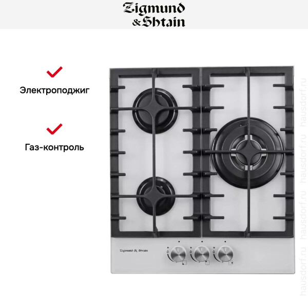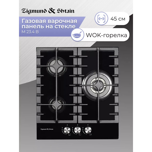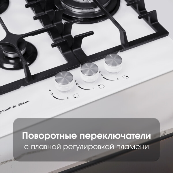 Zigmund & Shtain M 23.4 W оснащена мощной конфоркой с тройным рядом пламени, что позволит Вам более равномерно прогревать дно посуды и быстро приготовить большее количество еды.