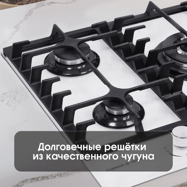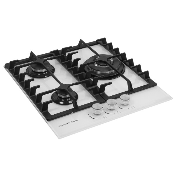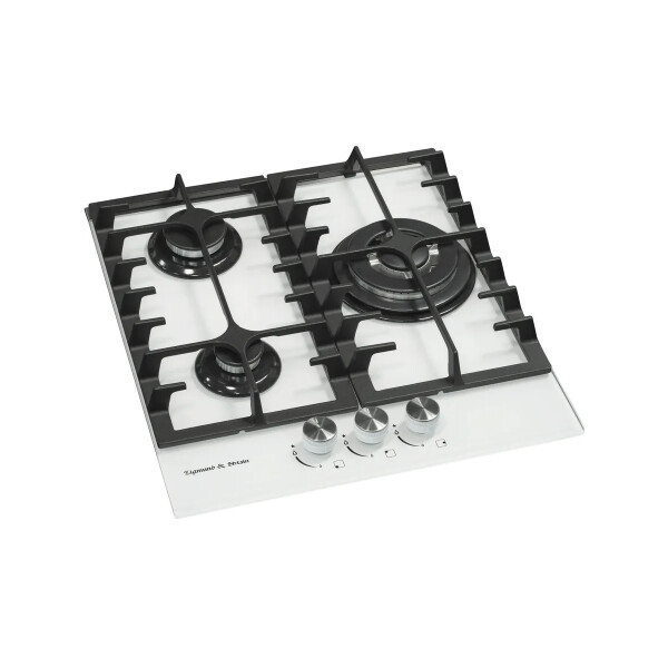 Белый цвет позволяет вписать модель практически в любой интерьер. Чугунная решетка обеспечит максимальную устойчивость посуды, а система газ-контроль позаботиться о Вашей безопасности, если пламя случайно погаснет. Три конфорки мощностью 950; 1880; 3400 Вт. регулируются с помощью поворотных переключателей, в каждой ручке есть автоподжиг.