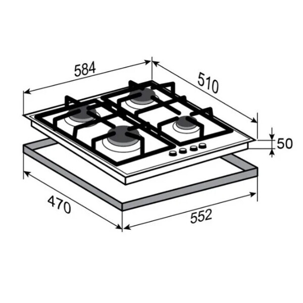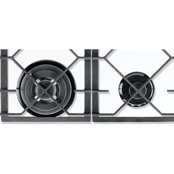 Выбор газовой варочной панели чаще всего обусловлен тем, что в частный дом или квартиру проведен именно газ в качестве обогрева. Работать с этой моделью довольно просто, так как мощность нагрева видна невооруженным взглядом по силе огня в горелке. Количество конфорок в этой модели: 4. Горелки с тройной короной имеют несколько ступеней нагрева в зависимости от них образуется несколько кругов пламени.