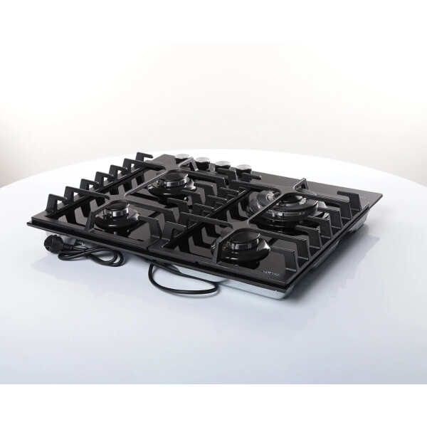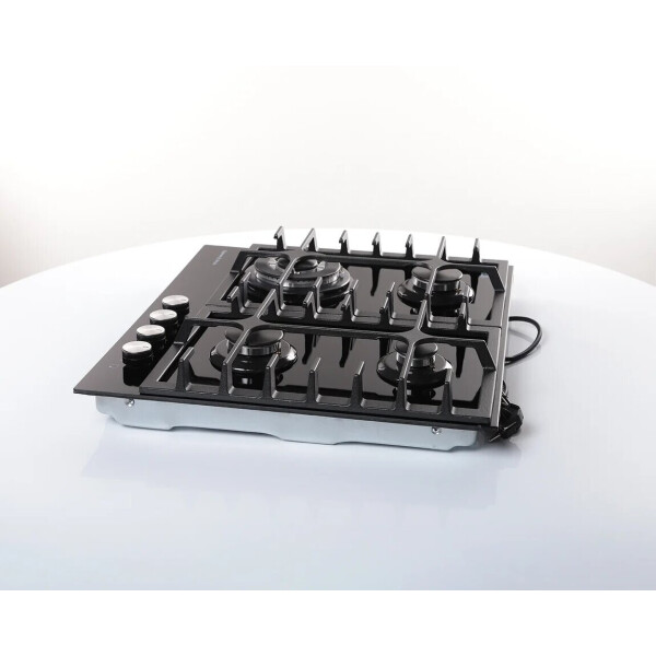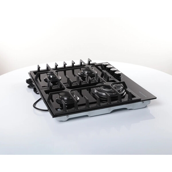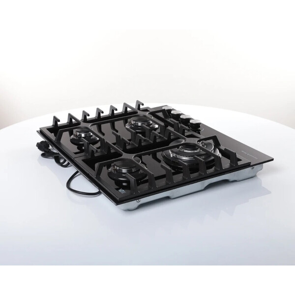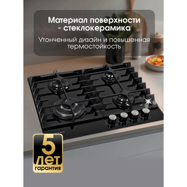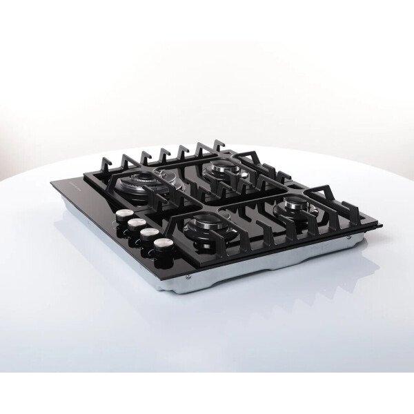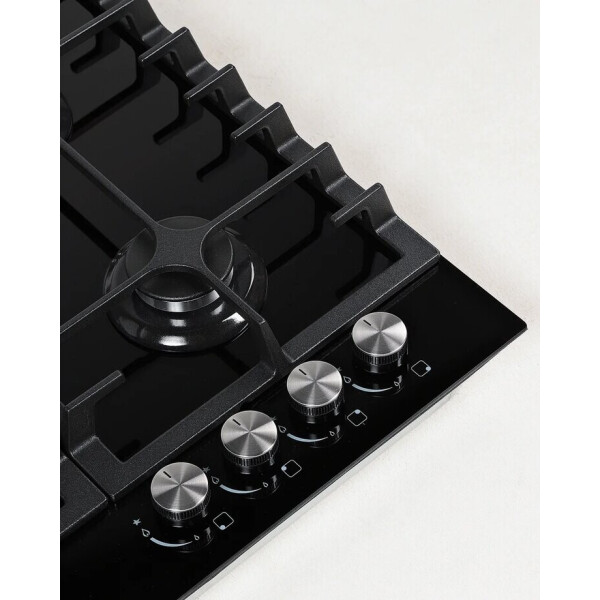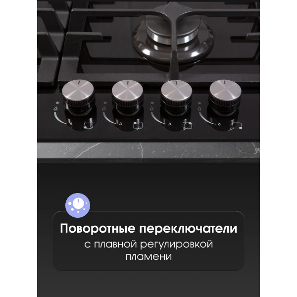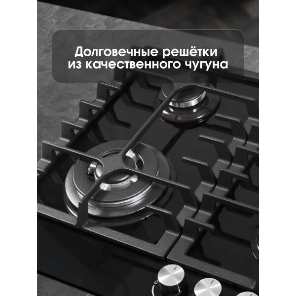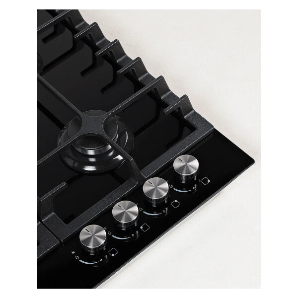 B ней продумано все до мельчайших деталей. Максимальное удобство и безопасность обеспечивают устойчивые чугунные решетки и система газ-контроль, интегрированная в конфорки. Фронтальное управление горелками удобно, а внешний вид панели исполненный в черном цвете будет достойным украшением Вашей кухни.